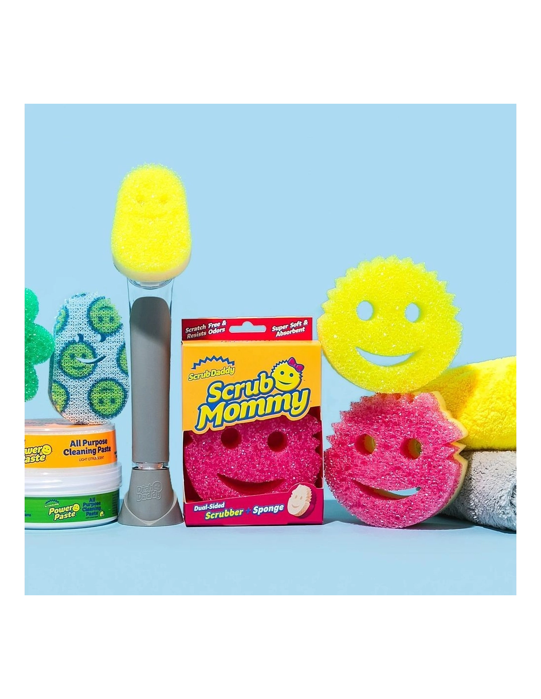Optimiza tu limpieza con el Estropajo + Esponja de Doble Cara Scrub Mommy , la versión de doble acción de la esponja más famosa de Estados Unidos. Esta pequeña joya rosa de innovación combina dos tecnologías patentadas para afrontar todas las tareas del hogar con una sonrisa.