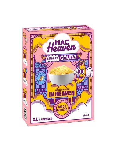 Mac Heaven Mac & Cheese Smokey Gouda es una mezcla de macarrones con queso con un intenso sabor a gouda ahumado . Una versión sofisticada y exquisita del clásico americano, con notas ahumadas y cremosas para una experiencia reconfortante excepcional.