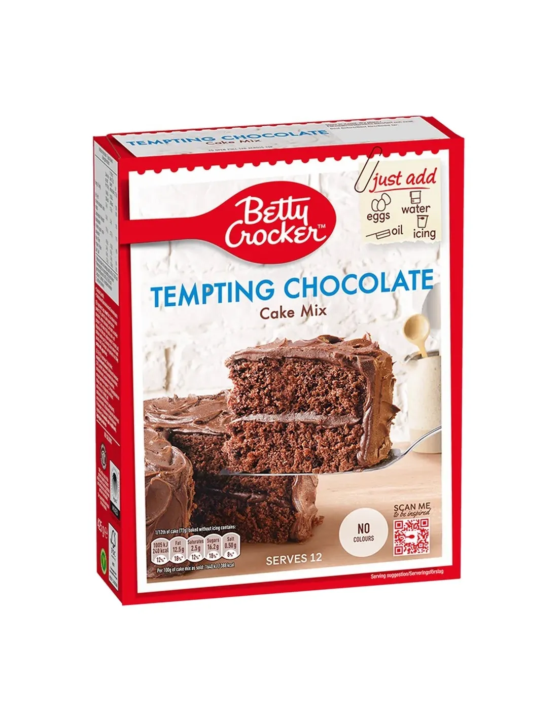 Betty Crocker Tempting Chocolate Cake Mix es muy fácil de hacer. ¡Fácil de usar, te permite hacer hermosos pasteles para una fiesta exitosa! Todas las indicaciones están presentes en la parte posterior de la caja, solo necesita agregar agua o leche, aceite vegetal y huevos. Puedes completar tu pastel con un glaseado de Betty Crocker que también puedes encontrar en Pop's America, incluso es esencial para un pastel exitoso.