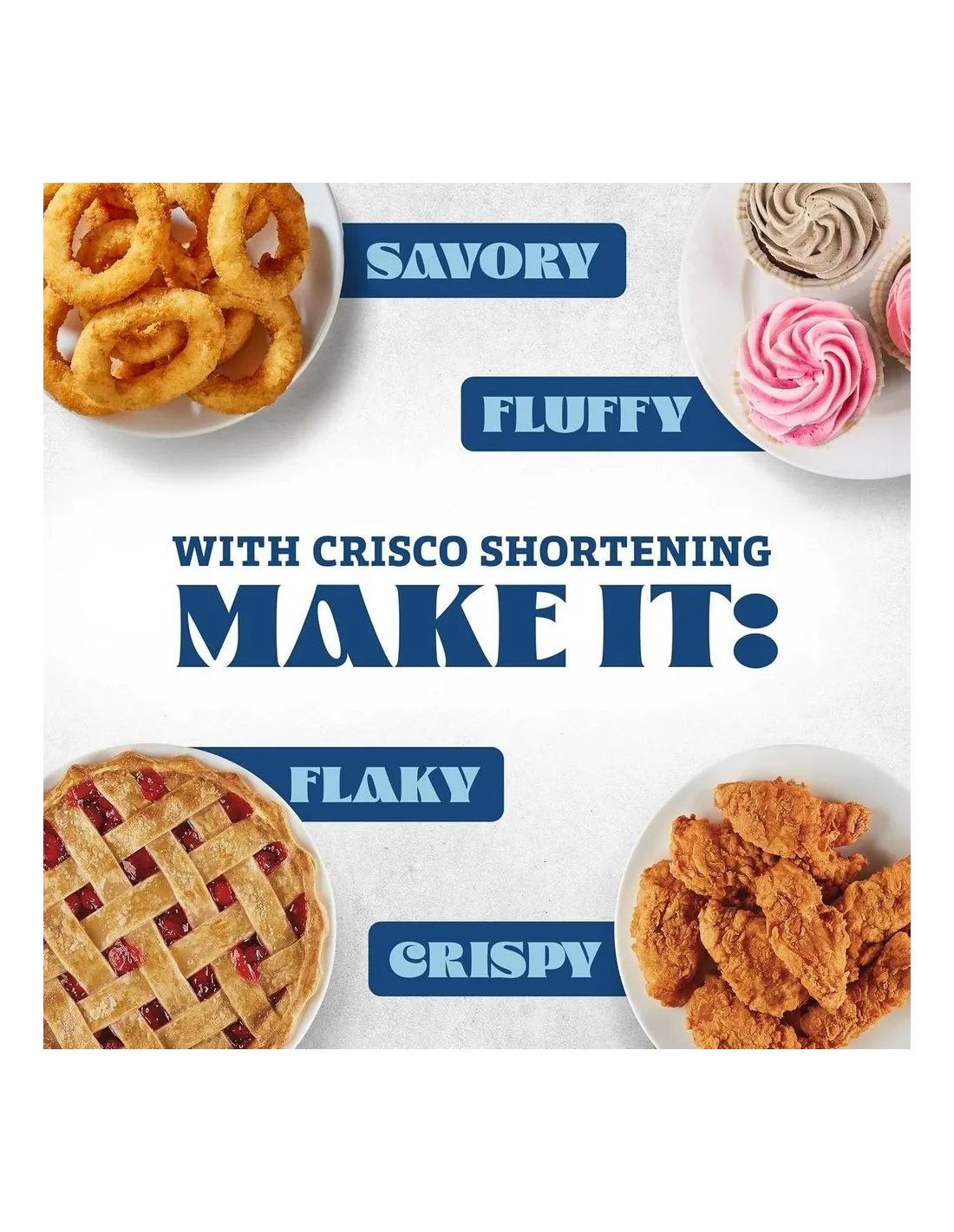 La manteca vegetal Crisco es una grasa vegetal versátil que se utiliza en pasteles, tartas, galletas y para freír, para lograr un acabado tierno y dorado.