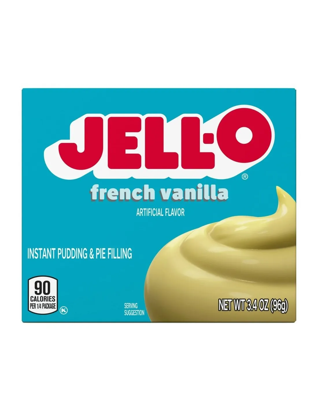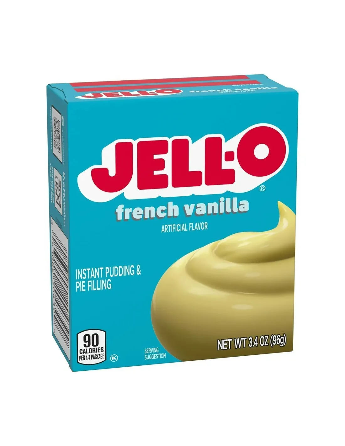 El Pudín y Relleno de Pie Instantáneo Jell-O Vainilla Francesa es una mezcla instantánea diseñada para crear un pudín de vainilla suave, rico y cremoso. Simplemente agregue leche fría y revuelva durante unos instantes hasta que la mezcla espese y adquiera una textura suave. El sabor "Vainilla Francesa" se distingue por un perfil más redondo, cremoso y ligeramente más mantecoso que el de la vainilla clásica, que recuerda a los postres tradicionales a base de leche.