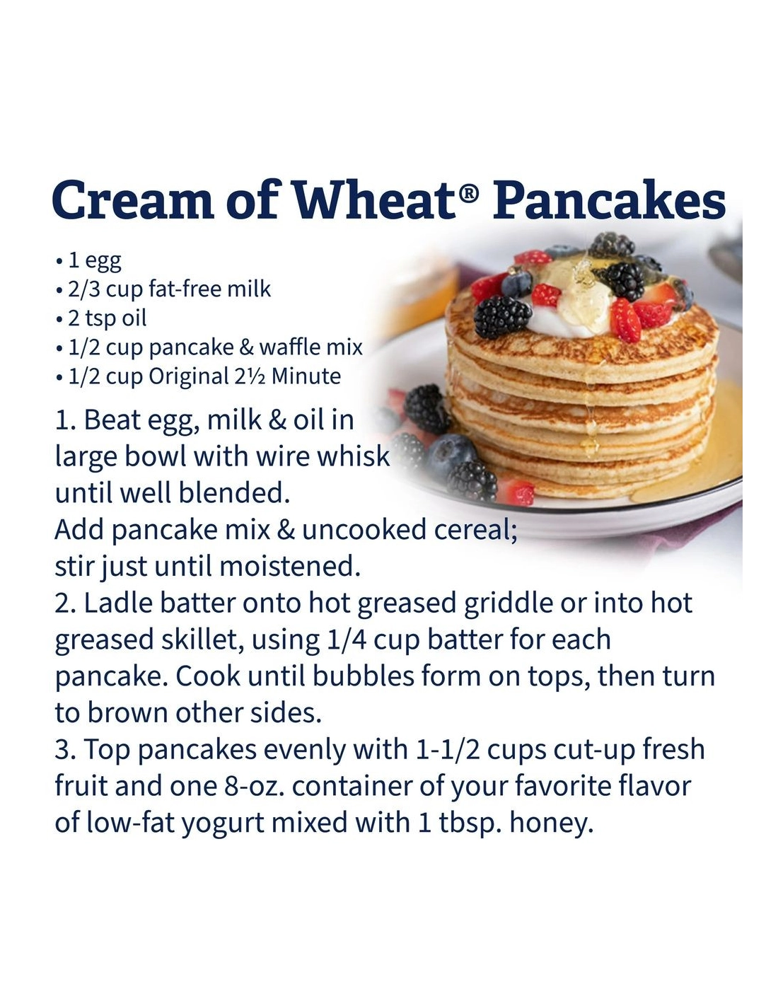 ¿Se te antoja la auténtica comida americana reconfortante para desayunar? ¡ El Cereal Caliente Original de 2.5 Minutos Cream of Wheat es el postre perfecto para desayunar! Desde 1893, la icónica marca Cream of Wheat ha deleitado a familias de todo Estados Unidos con su inigualable cremosidad . Olvídate de la avena común: desde la primera cucharada, te envuelve una textura suave, rica y reconfortante que se desliza por tu paladar y te reconforta al instante.