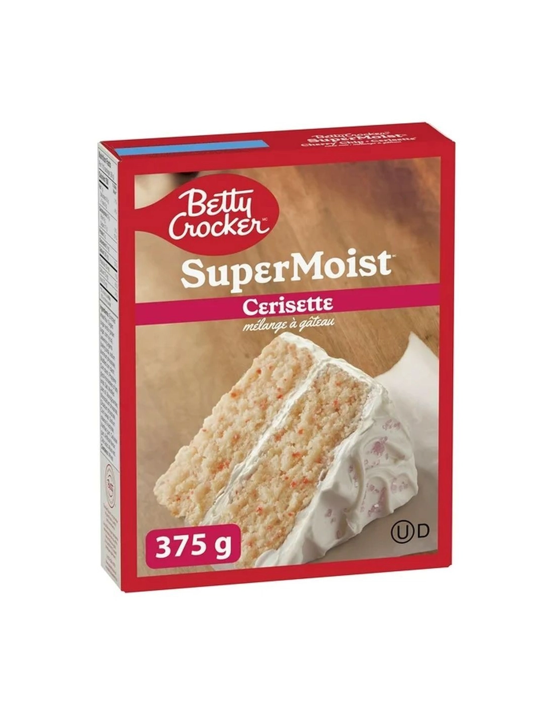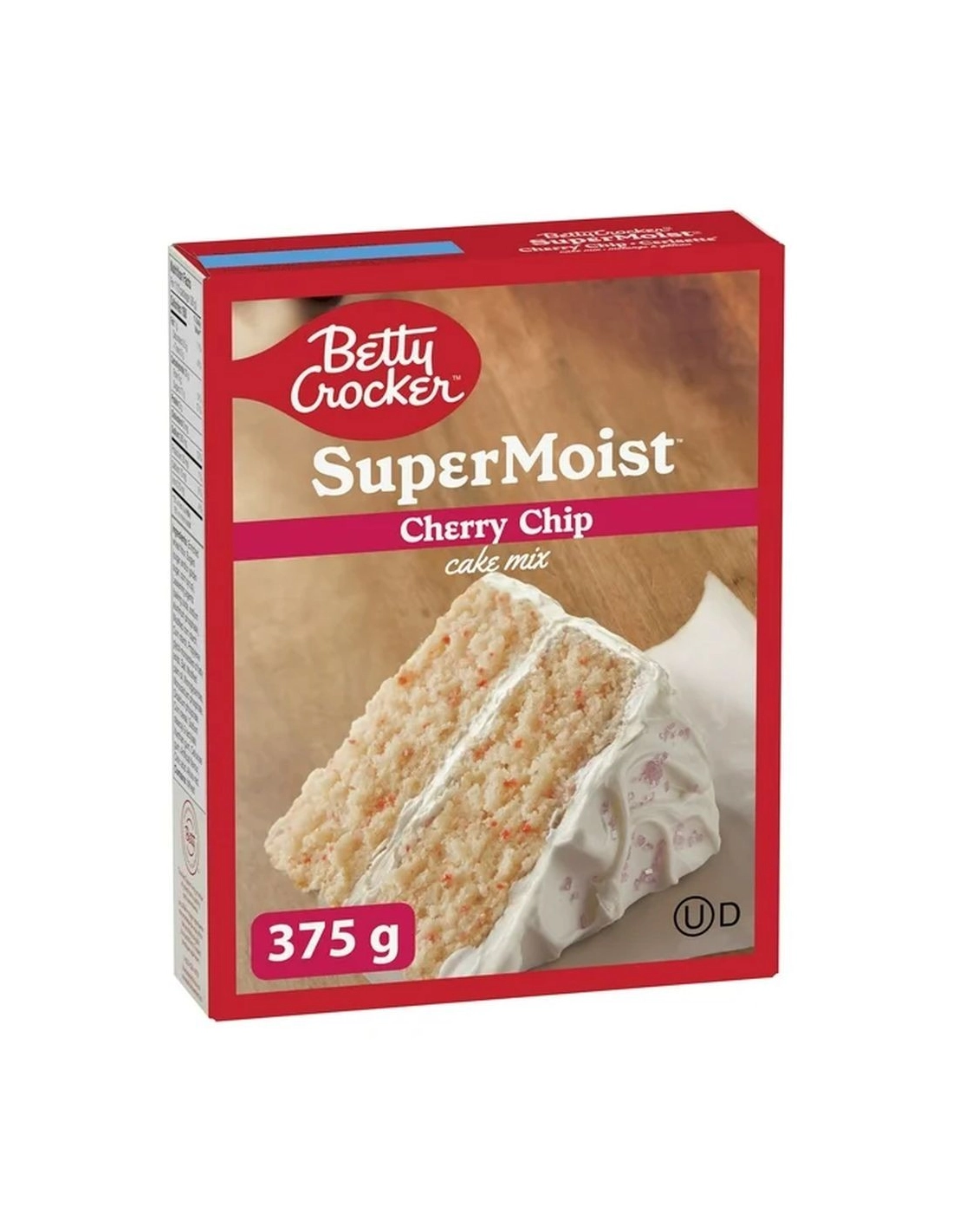 Descubre la mezcla para pastel Betty Crocker Super Moist Cherry Chip : ¡la famosa mezcla para pastel estadounidense ! El secreto infalible para hacer un pastel súper húmedo con abundantes trocitos de cereza que se deshacen en la boca.
