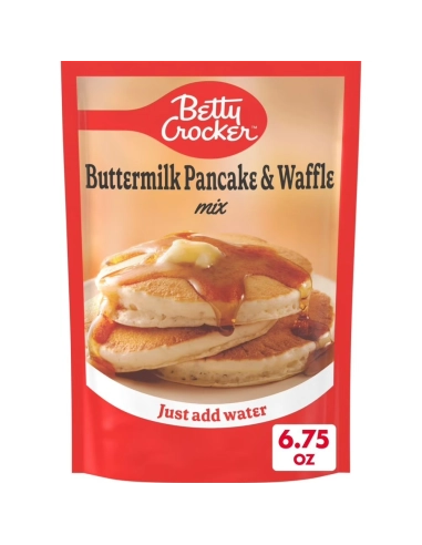¡Lleva la magia de los famosos restaurantes americanos a tu cocina desde primera hora de la mañana con la mezcla para panqueques y waffles de suero de leche Betty Crocker ! La famosa marca de la cuchara roja te facilita la vida con esta mezcla rápida y fácil en un práctico envase de 191 g (6.75 oz) .