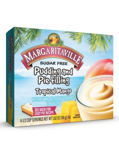 ¡Deleita tu paladar con Margaritaville Pudding & Pie Filling Tropical Mango (46 g) sin azúcar ! Una mezcla americana exprés para preparar una deliciosa crema de postre o rellenar un pastel, con un irresistible sabor a mango tropical y 100 % libre de azúcar .