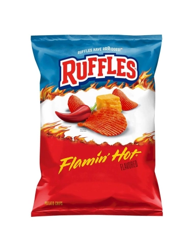 ¡Sube la temperatura en tu próxima reunión con las imprescindibles papas fritas Ruffles Flamin' Hot ! En Estados Unidos, Ruffles es la marca líder de papas fritas gracias a sus famosas estrías profundas. Estas estrías no son solo un adorno: garantizan un crujido excepcional en cada bocado.