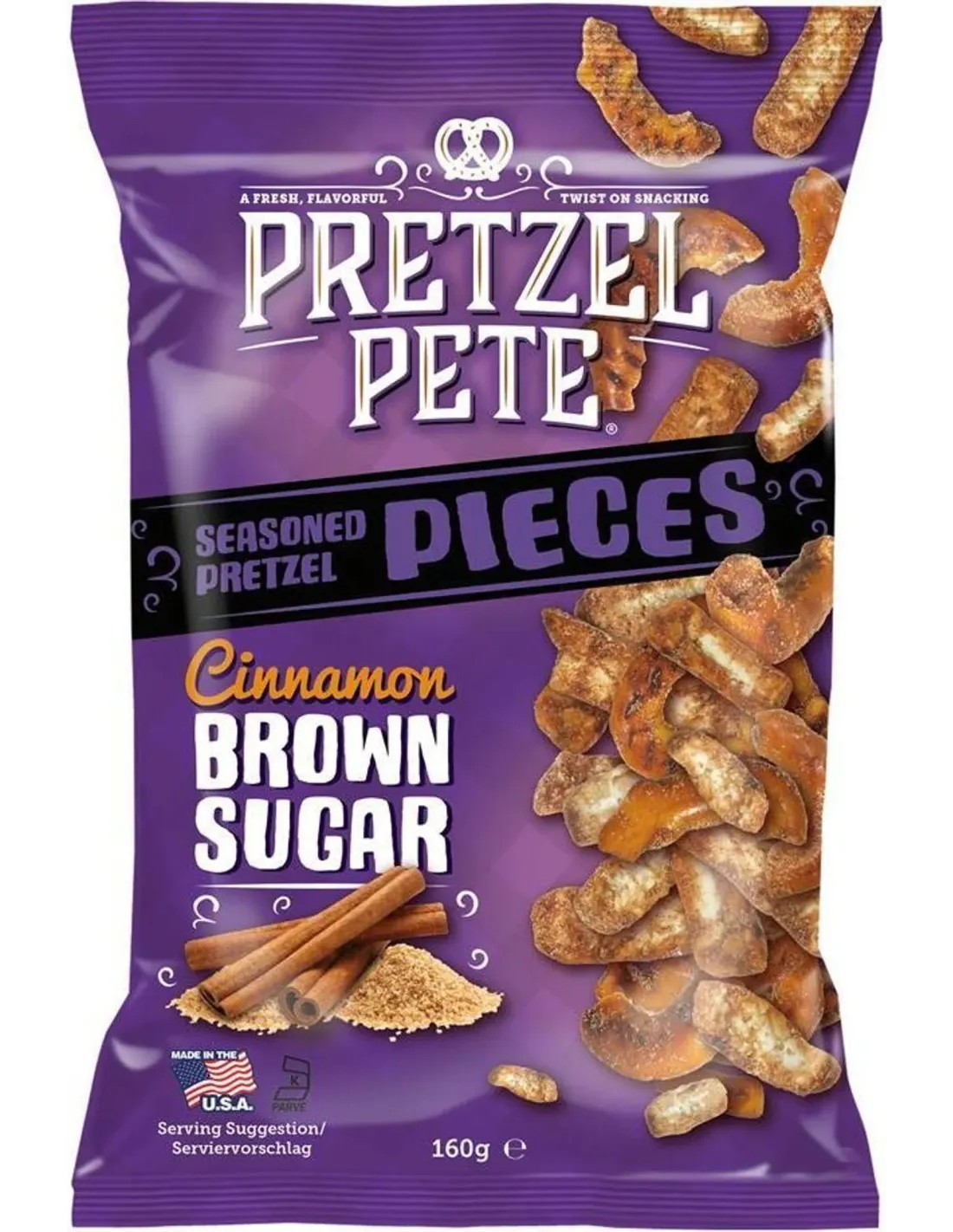 ¡Sumérgete en una irresistible mezcla de crujiente y dulzura con Pretzel Pete Pieces Cinnamon Brown Sugar !