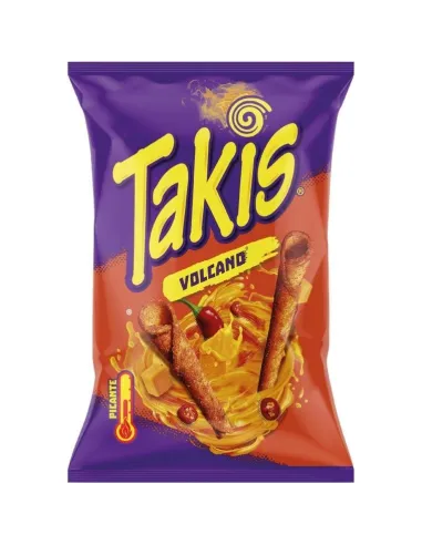 Delicadamente enrolladas, las tortillas de maíz Takis Queso Volcano incendiarán tus aperitivos. ¡Estas crujientes tortillas con su sabor a queso picante serán un verdadero reto culinario! ¡Su intenso picor despertará tus papilas gustativas! Crujientes y picantes, estas galletas saladas encenderán llamas en tu boca. ¿Te atreverás a darles un mordisco?