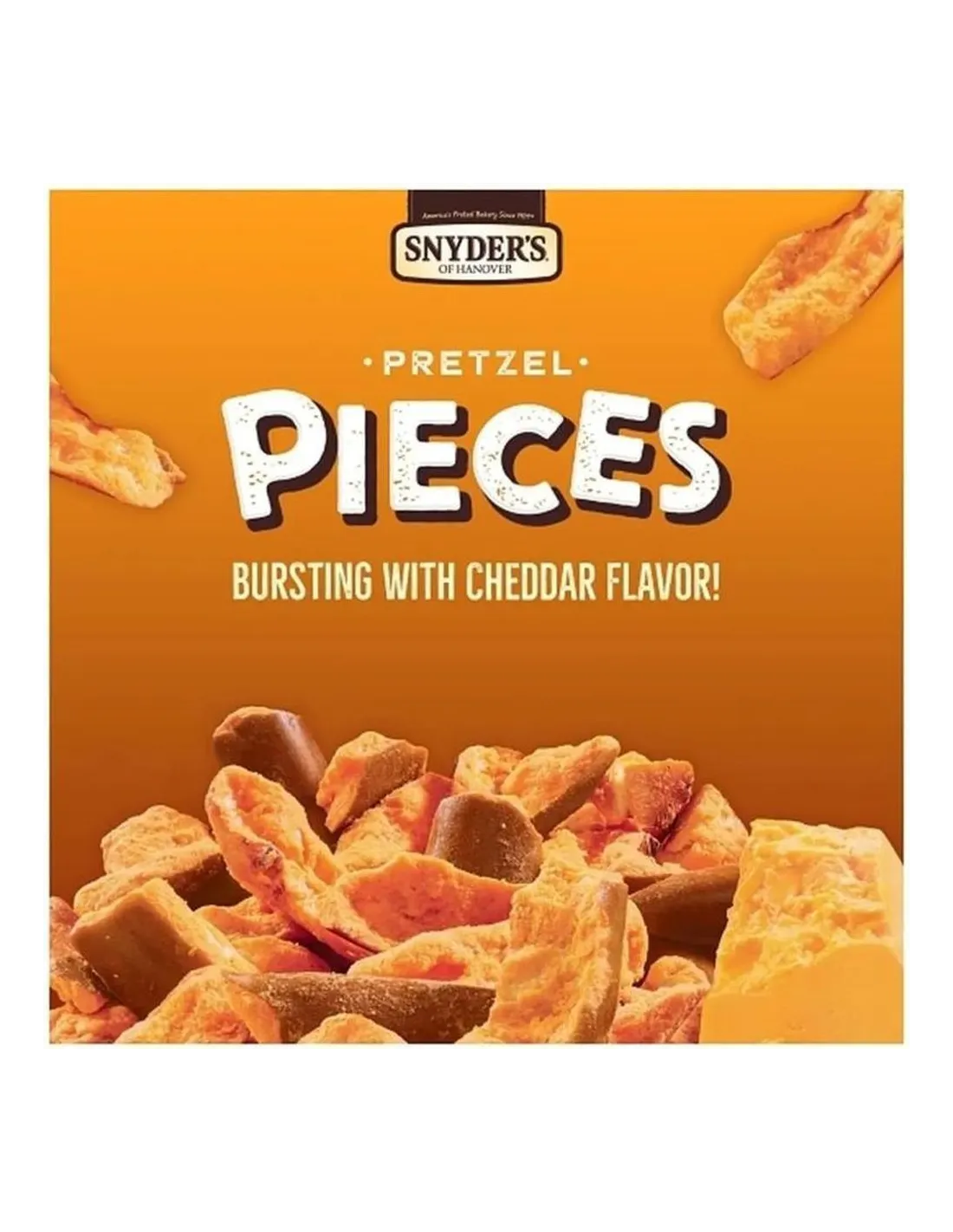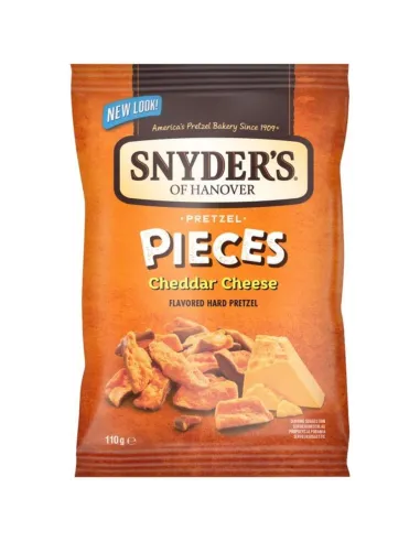 Los Pretzel Pieces Cheddar Cheese de Snyder's son el snack de queso más crujiente y explosivo. Trozos de pretzel rebosantes, crujientes y rebosantes de queso cheddar.