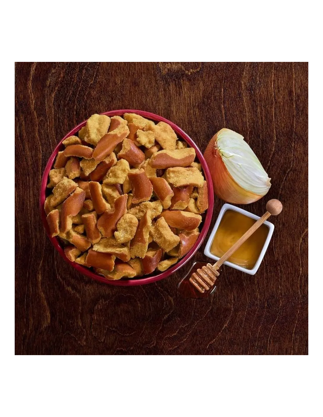 Trozos de pretzel Snyder's con miel, mostaza y cebolla
