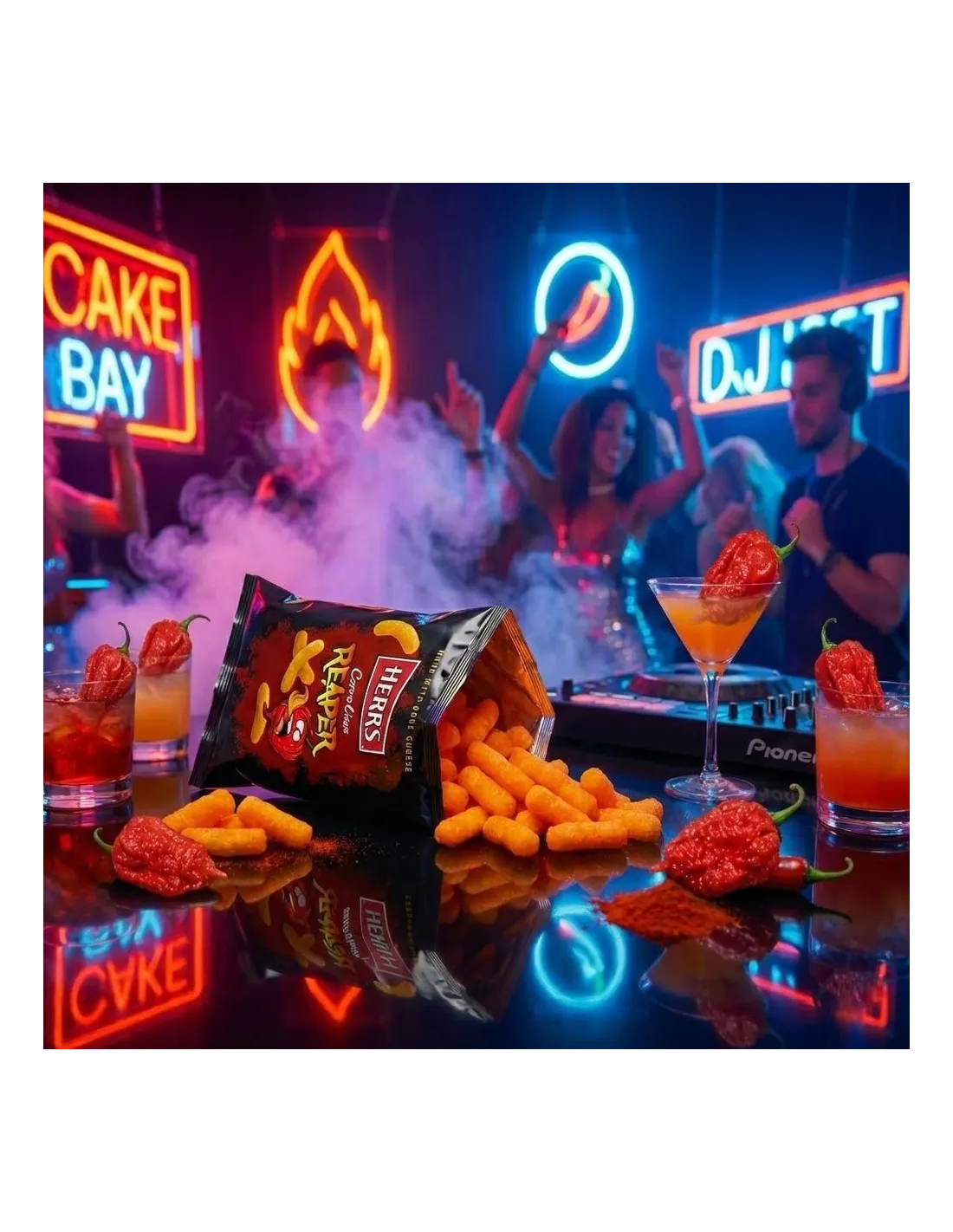 El chile más picante del mundo, el Carolina Reaper, ¡te hará sentir una explosión de sabor! Combinado con el delicioso sabor del queso, las papas fritas Herr's Carolina Reaper de 70 g le darán un toque picante a tu vida.