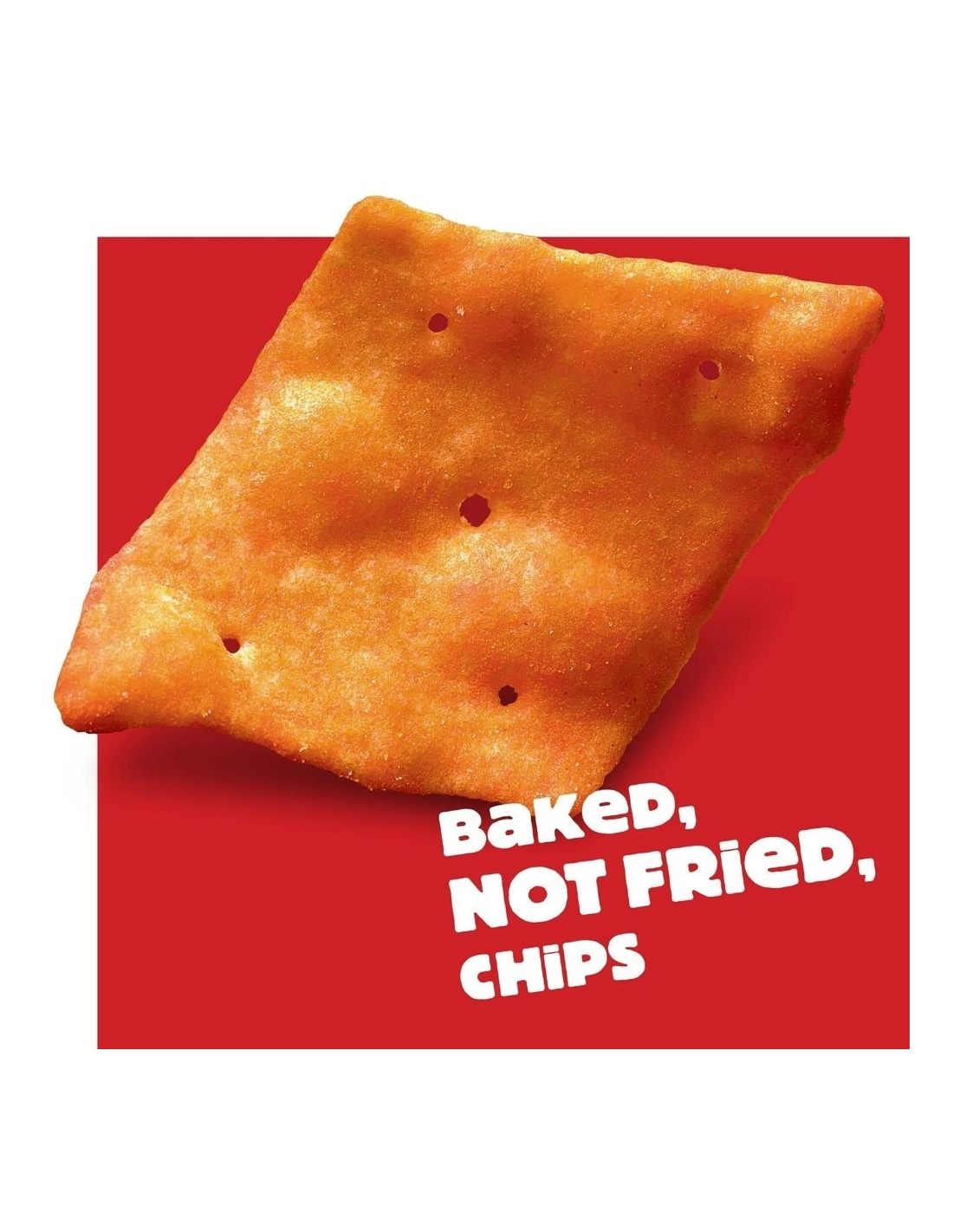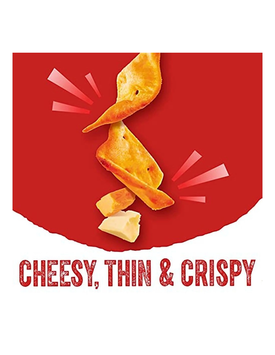 El resultado es una doble explosión de queso que libera sabores ricos y auténticos a queso con cada bocado. Más delgadas que las clásicas galletas Cheez-It, estas galletas ofrecen una textura ligera y ligera combinada con la máxima intensidad de sabor. La base de papas deshidratadas y harina enriquecida crea esta textura única: crujientes sin ser pesadas, saciantes sin remordimientos.