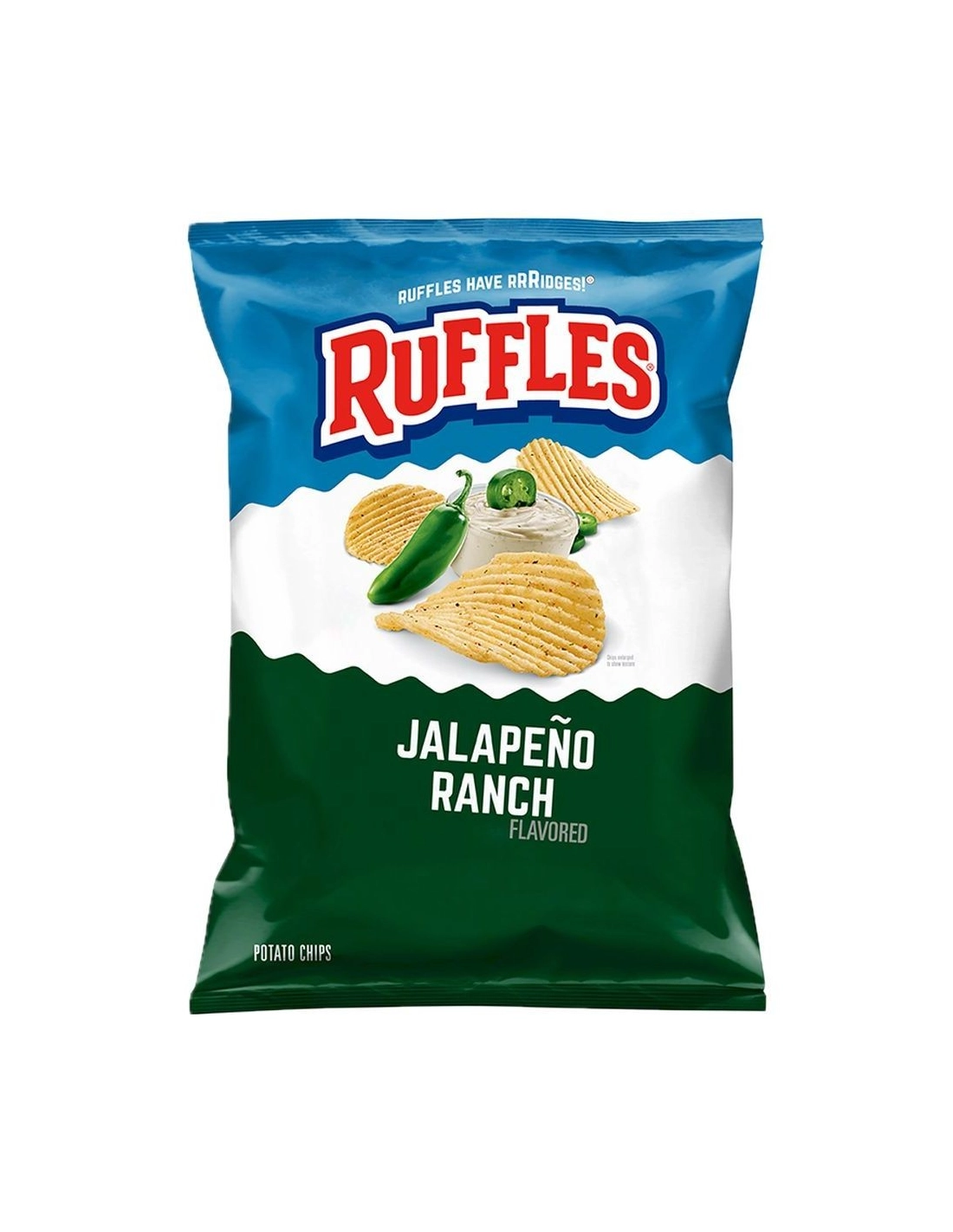 Déjese sorprender por una de las mejores combinaciones de sabores tex-mex con las deliciosas papas fritas Ruffles Jalapeño Ranch . Ruffles es famosa en Estados Unidos por sus papas fritas con profundas estrías, que ofrecen un crujido intenso que retiene perfectamente los condimentos.