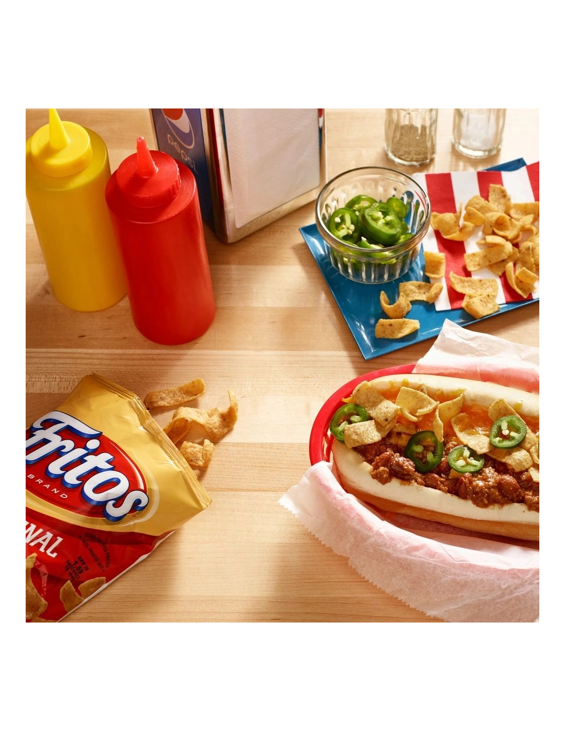 ¡Sumérgete en la historia de los snacks estadounidenses con la icónica bolsa roja de Fritos The Original Chips ! Desde la década de 1930, la marca Fritos ha deleitado a generaciones en Estados Unidos con su receta emblemática que se centra en la simplicidad: maíz de calidad, aceite, una pizca de sal, ¡y nada más!