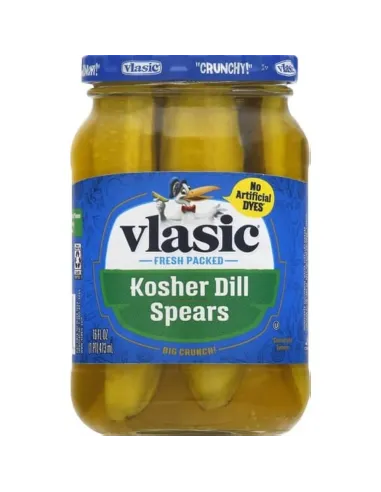 Las lanzas de eneldo kosher Vlasic representan uno de los productos más emblemáticos de la cocina estadounidense: el crujiente, ácido y aromático pepinillo encurtido. Preparados según el método kosher del eneldo , estos pepinillos cortados en cuña ofrecen una textura increíblemente crujiente y un sabor equilibrado a vinagre, sal, ajo y eneldo. Es el sabor típico de los pepinillos que se sirven en restaurantes, charcuterías neoyorquinas o restaurantes de comida rápida estadounidenses.