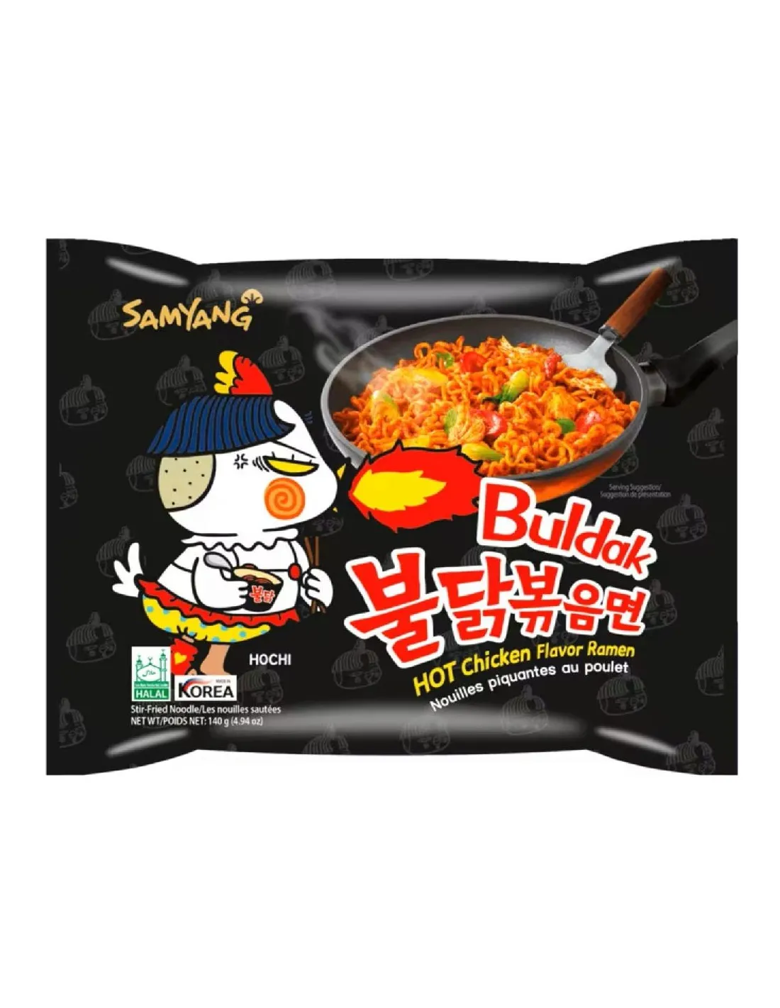 Con los fideos Buldak Hot Chicken Bowl en un paquete de 140 g, te encantará el caldo de pollo picante de esta receta original. Es la comida perfecta para cuando tienes prisa, ya que solo tienes que abrir el paquete de fideos y especias, añadir agua caliente y remover.