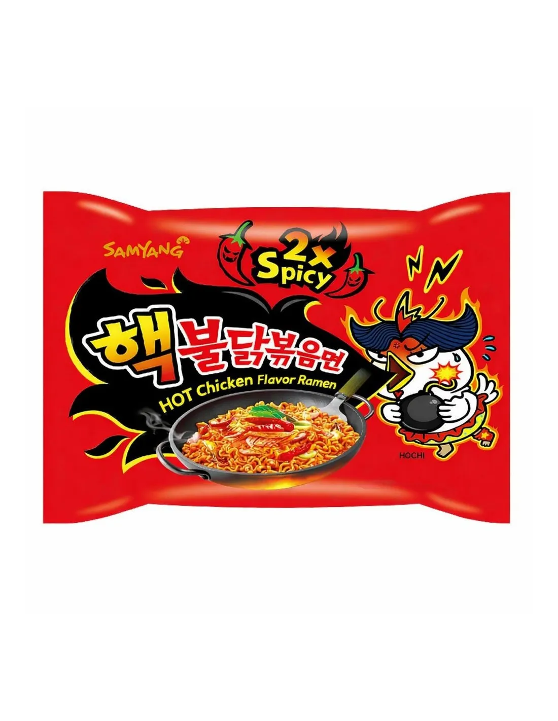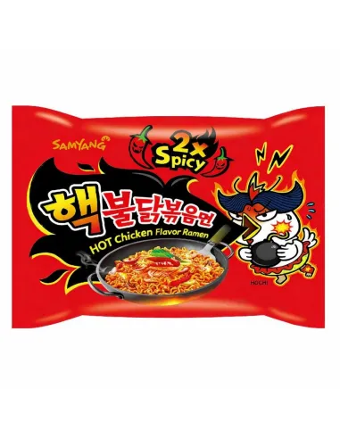 Con los fideos de pollo Samyang Ramen 2x Picantes en un paquete de 140 g, te encantará este caldo de pollo el doble de picante que la receta original. Es la comida perfecta para cuando tienes prisa, ya que solo tienes que abrir el paquete de fideos y especias, añadir agua caliente y remover.