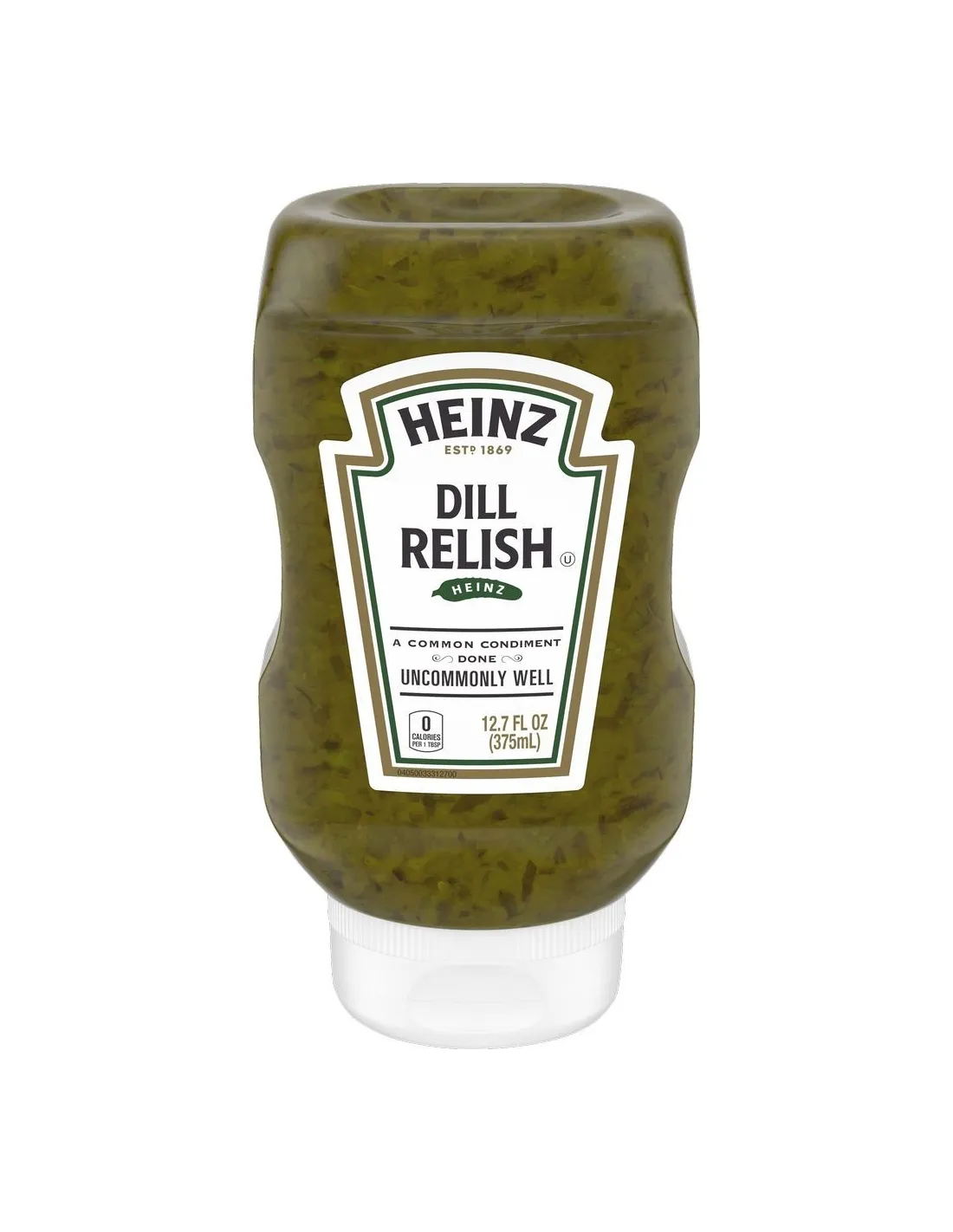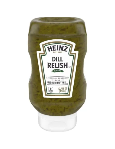 El Eneldo Heinz es el condimento esencial para los hot dogs y hamburguesas americanas. Esta mezcla de pepinillos crujientes y repollo encurtido , aderezada con eneldo y trozos de pimiento rojo, aporta textura y frescura a todos tus platos. Práctico envase flexible de 375 ml para una dosificación precisa. Dulce, ácido y salado: el auténtico sabor de la barbacoa americana desde 1869.