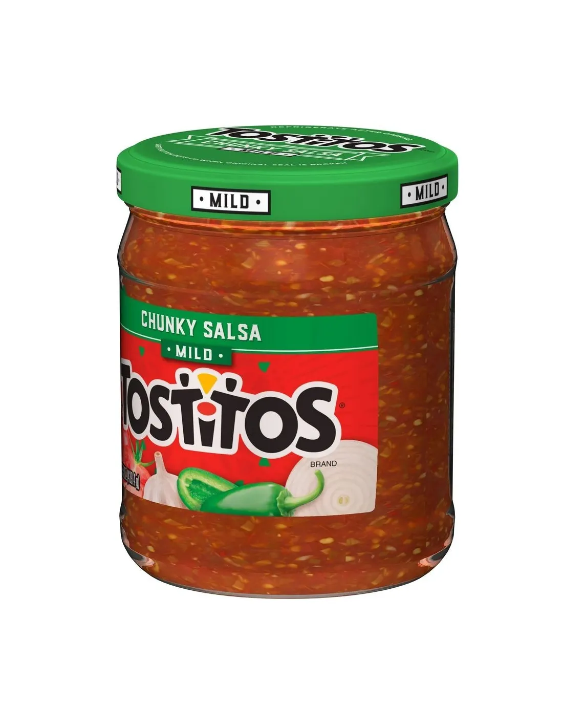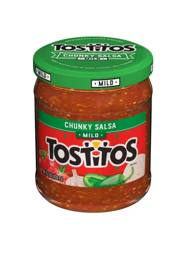 La Salsa Tostitos Chunky Suave encarna a la perfección el concepto de salsa americana: generosa en trozos, sabrosa y accesible para todos los paladares. Esta versión "Suave" fue formulada especialmente para quienes disfrutan de los sabores Tex-Mex sin el picante intenso de los chiles. Ofrece todo el sabor de la salsa auténtica con un nivel de picante muy moderado.