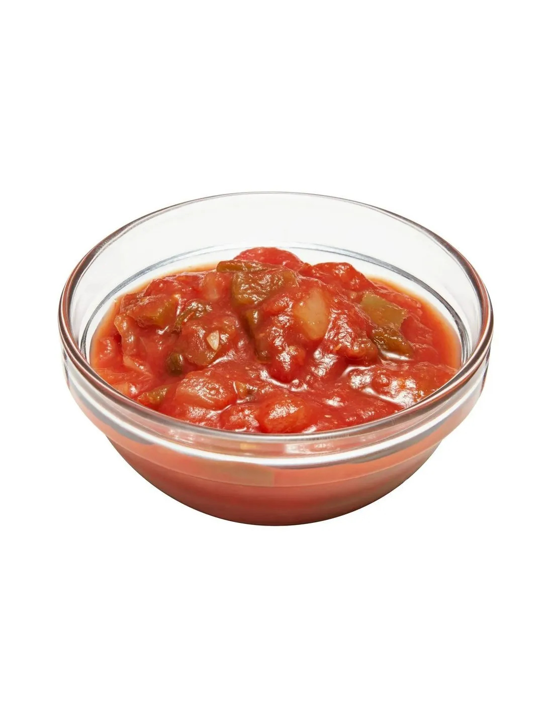 La textura gruesa marca la diferencia: auténticos trozos de tomate en cubos , cebollas crujientes y jalapeños finamente picados crean una consistencia rica que se adhiere perfectamente a las papas fritas . La base de puré de tomate aporta cremosidad, mientras que el vinagre y el ajo en polvo le dan profundidad. El resultado es una salsa equilibrada donde cada ingrediente destaca sin eclipsar a los demás.