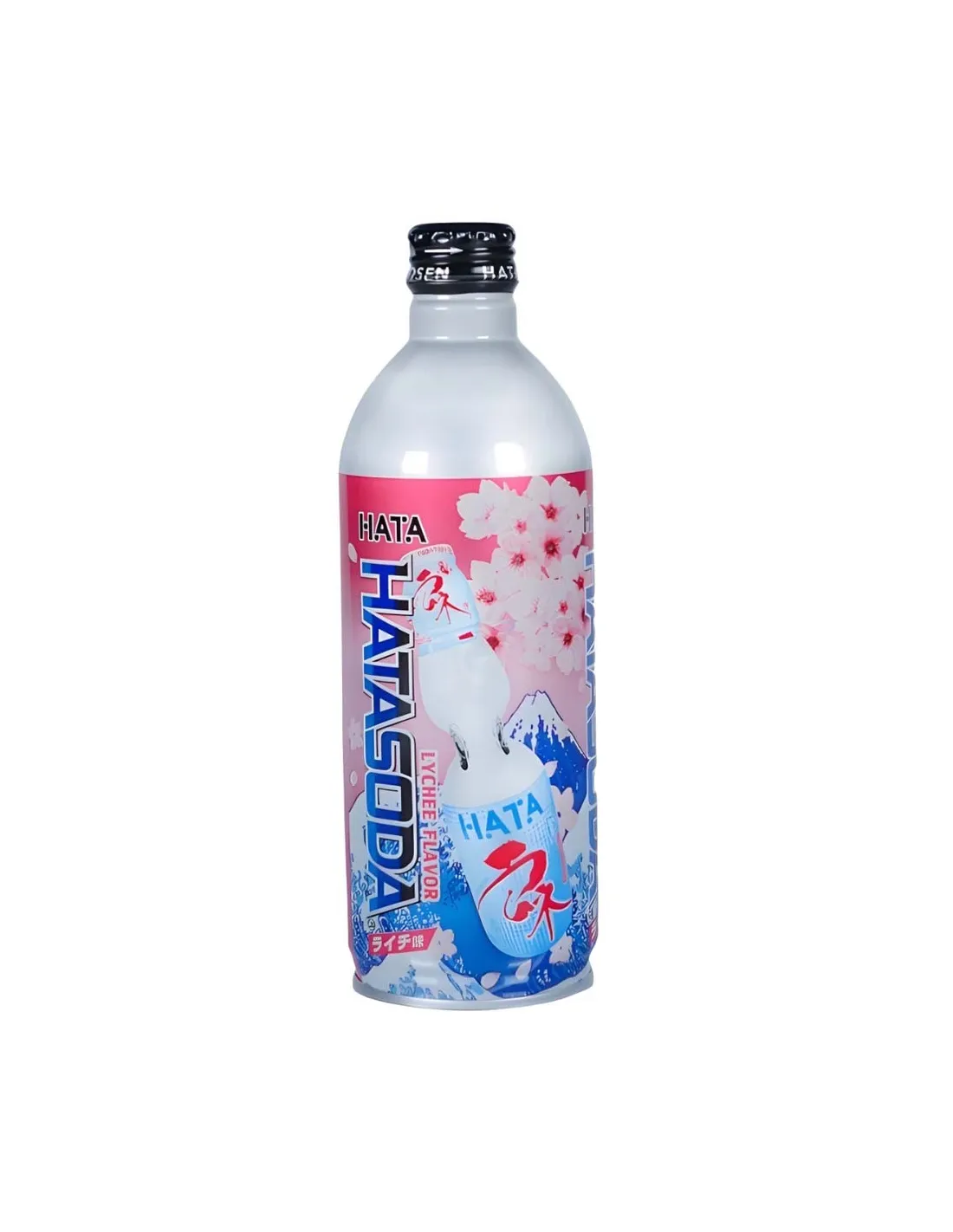 Descubre la limonada japonesa Hata Lychee Soda . Una limonada con un delicioso sabor a lichi en una botella de aluminio de 500 ml.