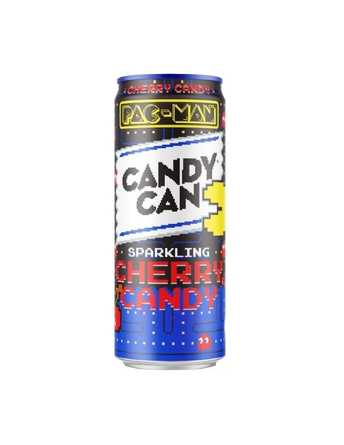 El refresco Candy Can Pac-Man Cherry Candy es un refresco de cereza dulce y efervescente, con los colores del famoso juego Pac-Man.