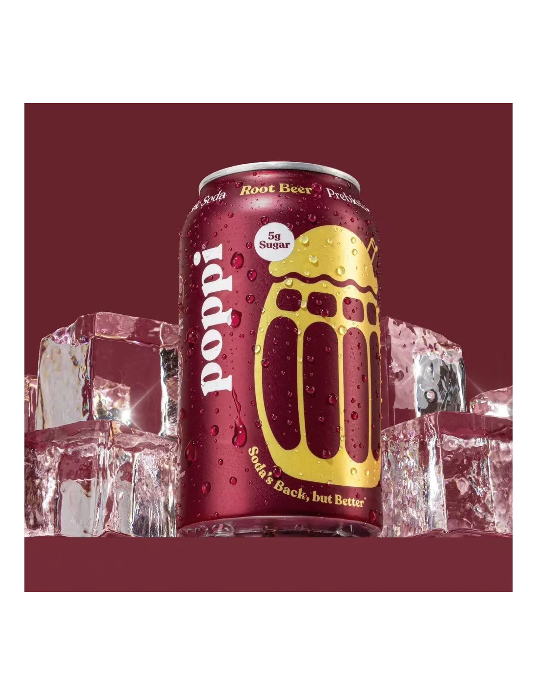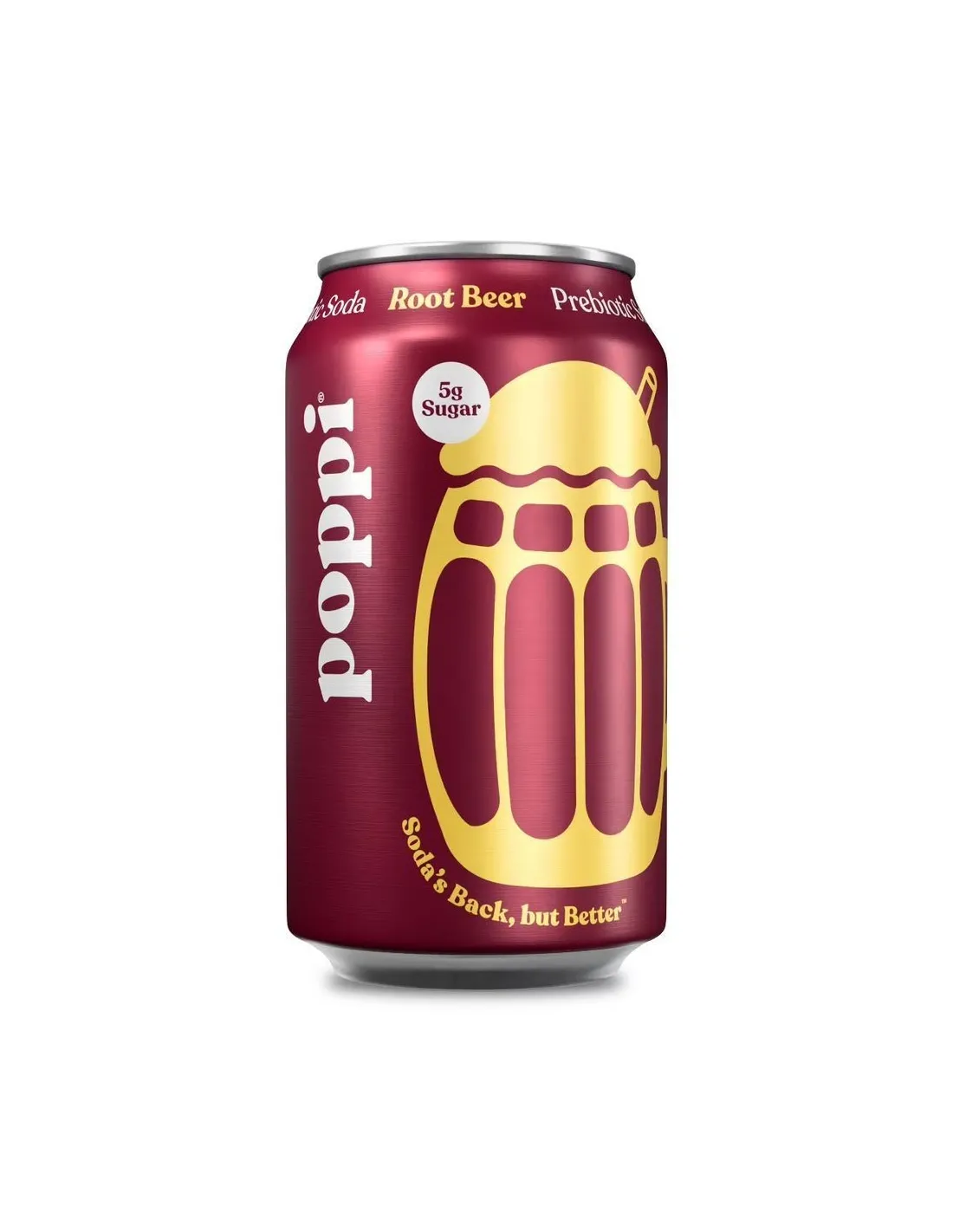 Poppi Prebiotic Soda Root Beer es una versión renovada del tradicional refresco estadounidense “root beer”: una bebida con gas con un típico sabor a vainilla y melaza, baja en azúcar y con prebióticos naturales para combinar placer y bienestar.