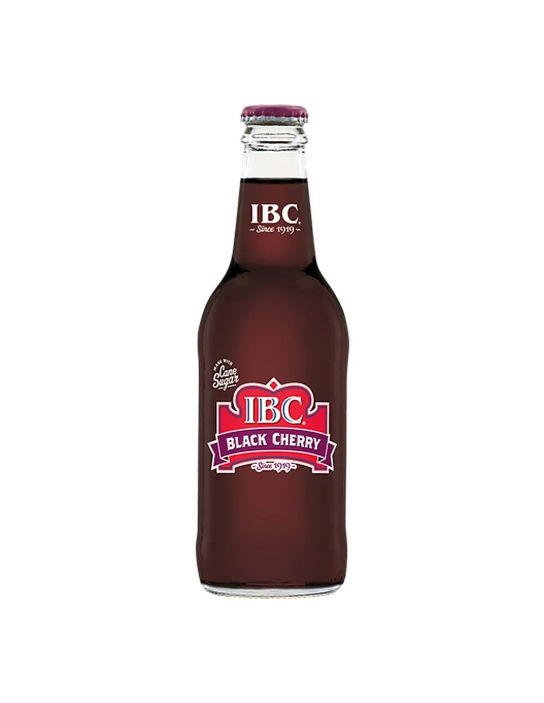 IBC Black Cherry encarna la excelencia de los refrescos artesanales estadounidenses en una versión afrutada y placentera. La receta incluye agua carbonatada, azúcar de caña, ácido cítrico, benzoato de sodio (conservante), colorante Rojo 40, sabores naturales y artificiales, colorante caramelo y colorante Azul 1. Su perfil de sabor ofrece una explosión de sabor a cereza negra: notas frutales intensas y ligeramente ácidas, un dulzor suave gracias al auténtico azúcar de caña y un final dulce que recuerda a las cerezas maduras de verano.