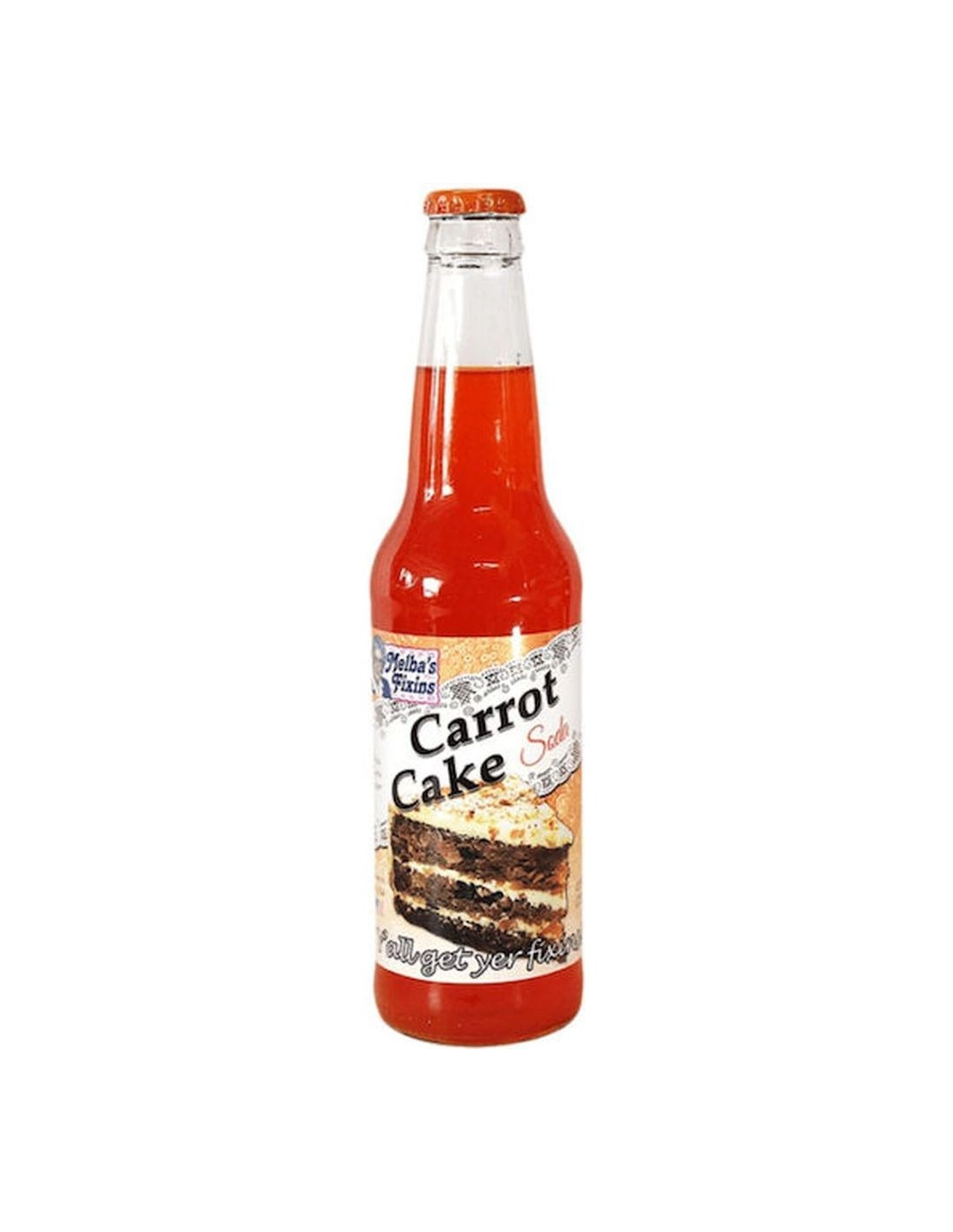 Olvídate del postre y ve directamente al vaso con la increíble gaseosa de pastel de zanahoria Melba's Fixins (355 ml) . Creada por los excéntricos genios de Rocket Fizz, esta inusual gaseosa americana captura a la perfección el sabor del famoso pastel de zanahoria en una botella. Presentada en una auténtica botella de vidrio retro, descubre una bebida burbujeante con dulces notas de especias, zanahoria y glaseado de vainilla. ¡Una experiencia divertida y original que no te puedes perder!