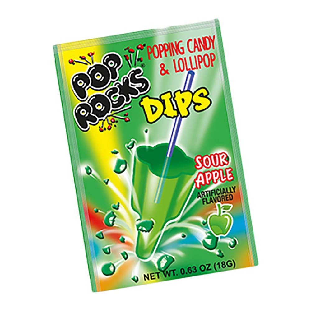 Check out Pop Rocks Dips Sour Apple candy. Pop Rocks have been recognized since the 70s for having brought joy to all American children. A slightly different version since it is a Pop Rocks Dips still containing the delicious powder but this time accompanied by a lollipop to dip in the powder.