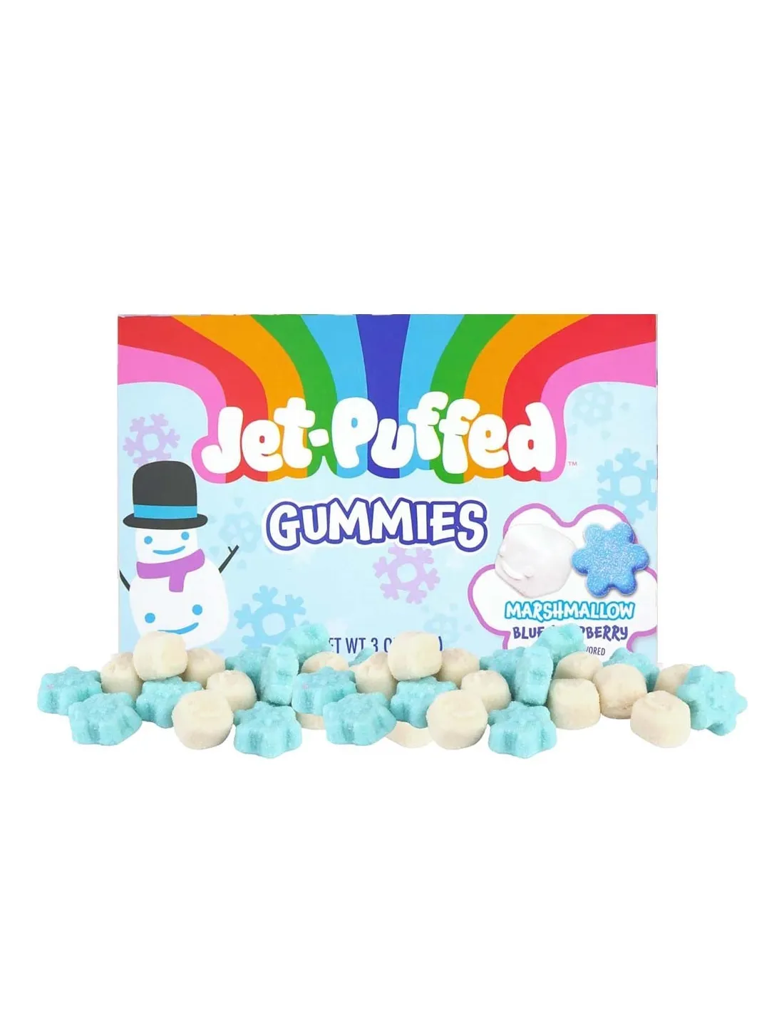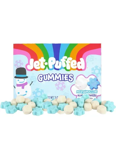 Jet-Puffed Gummies are small gummies with a delicious blue raspberry and marshmallow flavor.