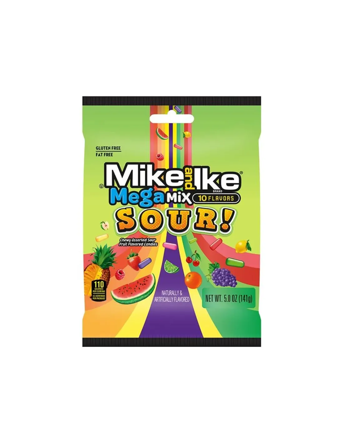 The Mike and Ike Mega Mix Sour candy bag includes several flavors of these candies, very popular among Americans, it is a standard in the USA . In each package which is 141gr, you will be able to discover 10 sour flavors. You will not remain indifferent to these candies. All Mike and Ike brand candies are gluten-free, fat-free, GLUTEN FREE!