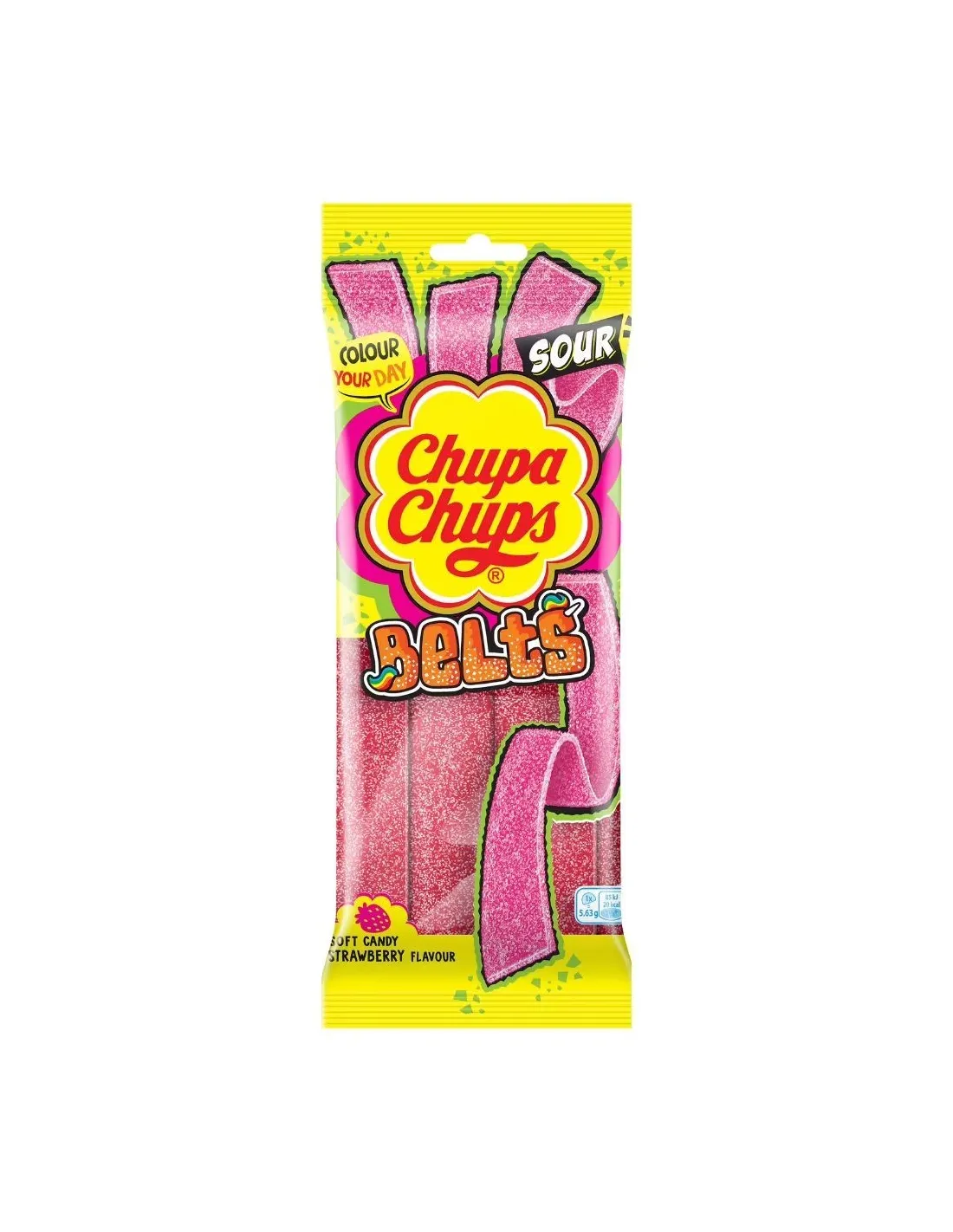 Enjoy them alone, share them, or add them to a candy bar—Sour Belts Strawberry are perfect for a fun and colorful break. Chupa Chups , the iconic confectionery brand, revisits its emblematic world here in a chewable candy format, true to its pop and indulgent spirit.