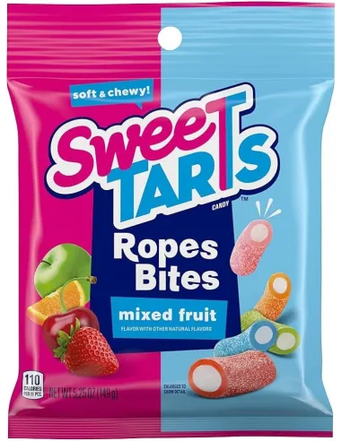 Dive into a whirlwind of flavors with SweeTARTS Ropes Bites , an even more fun and convenient version of the famous SweeTARTS Ropes ! These colorful and chewy bites have a melting and tangy center, for a perfect contrast between fruity sweetness and light zest.