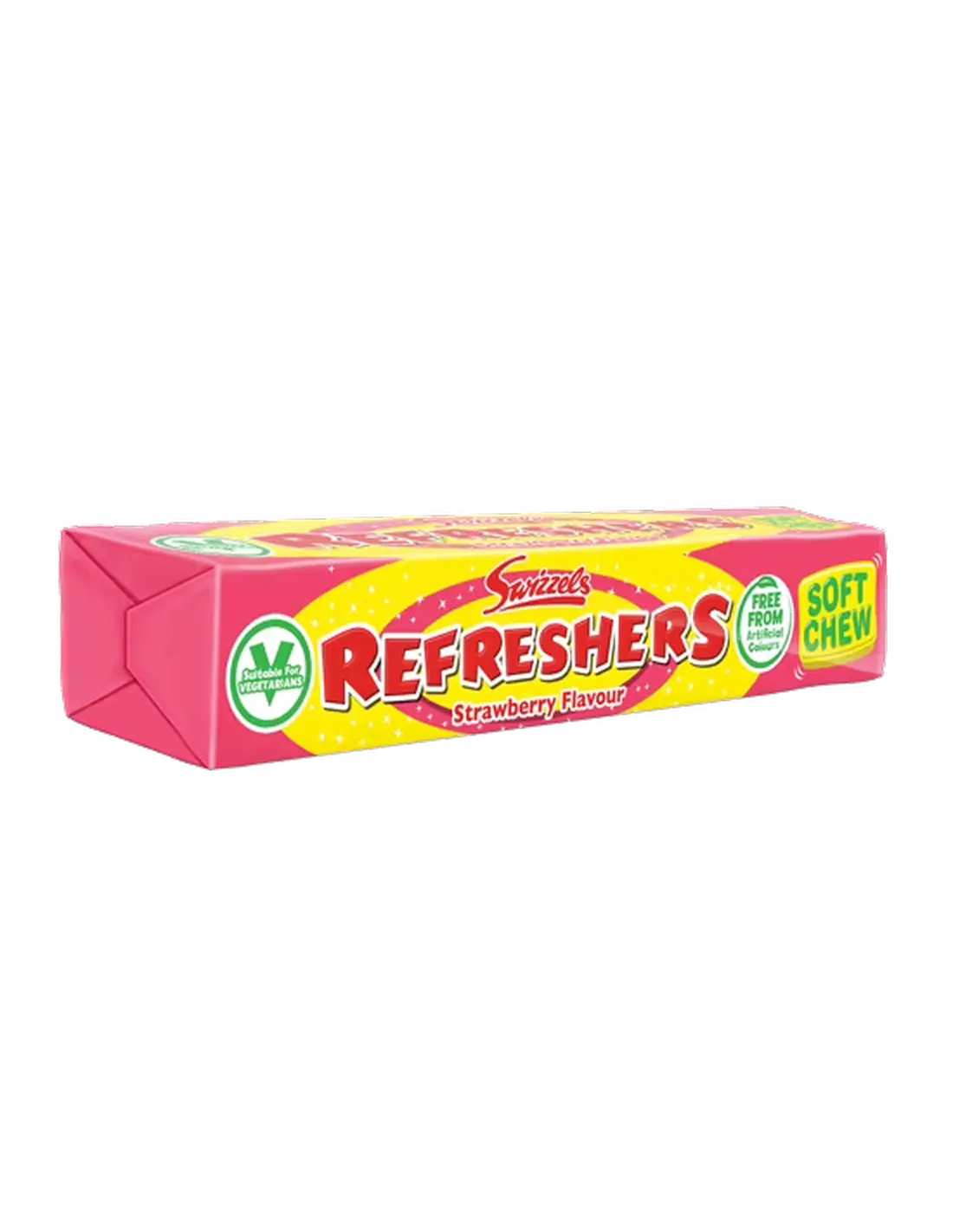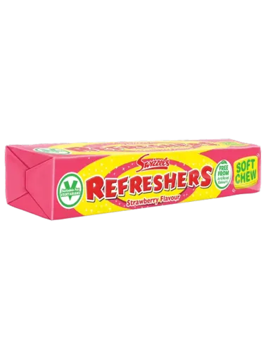 Relive your childhood with Swizzels Refreshers Strawberry , a fruity and sparkling version of Britain's favorite retro candy! These chewy candies combine the sweet softness of strawberry with an effervescent center, for an explosion of tangy flavors in every bite.