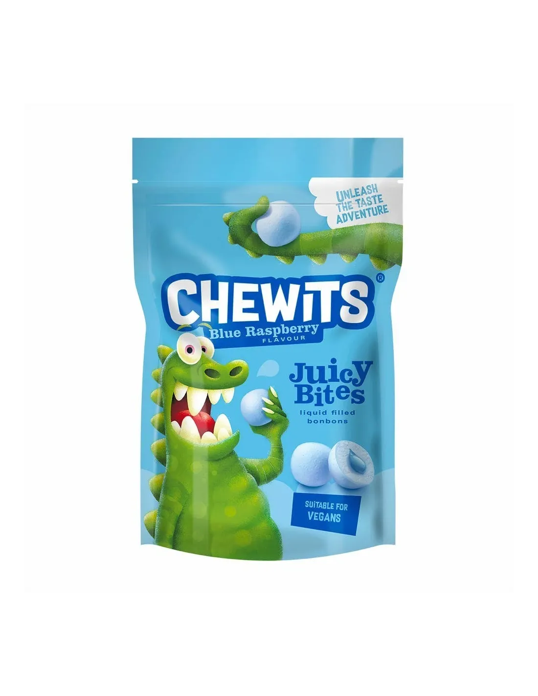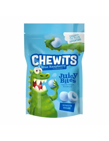 Dive into an ocean of sweetness with Chewits Juicy Bites Blue Raspberry , soft and fruity candies with an intense blue raspberry flavor, one of the most iconic flavors of British confectionery.
