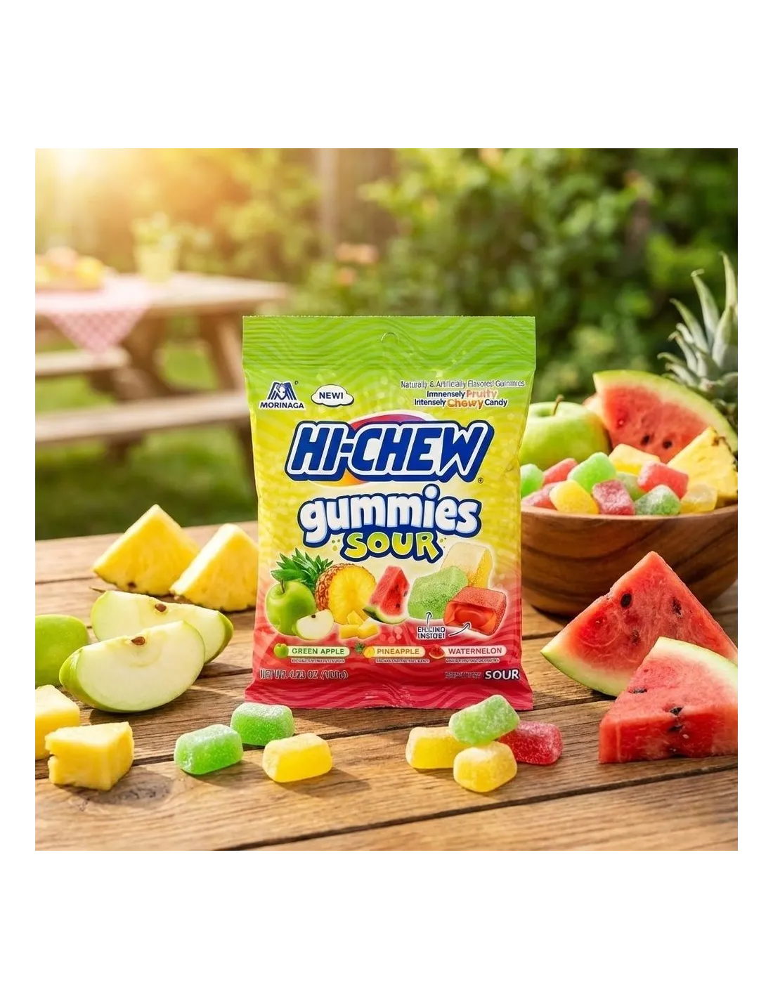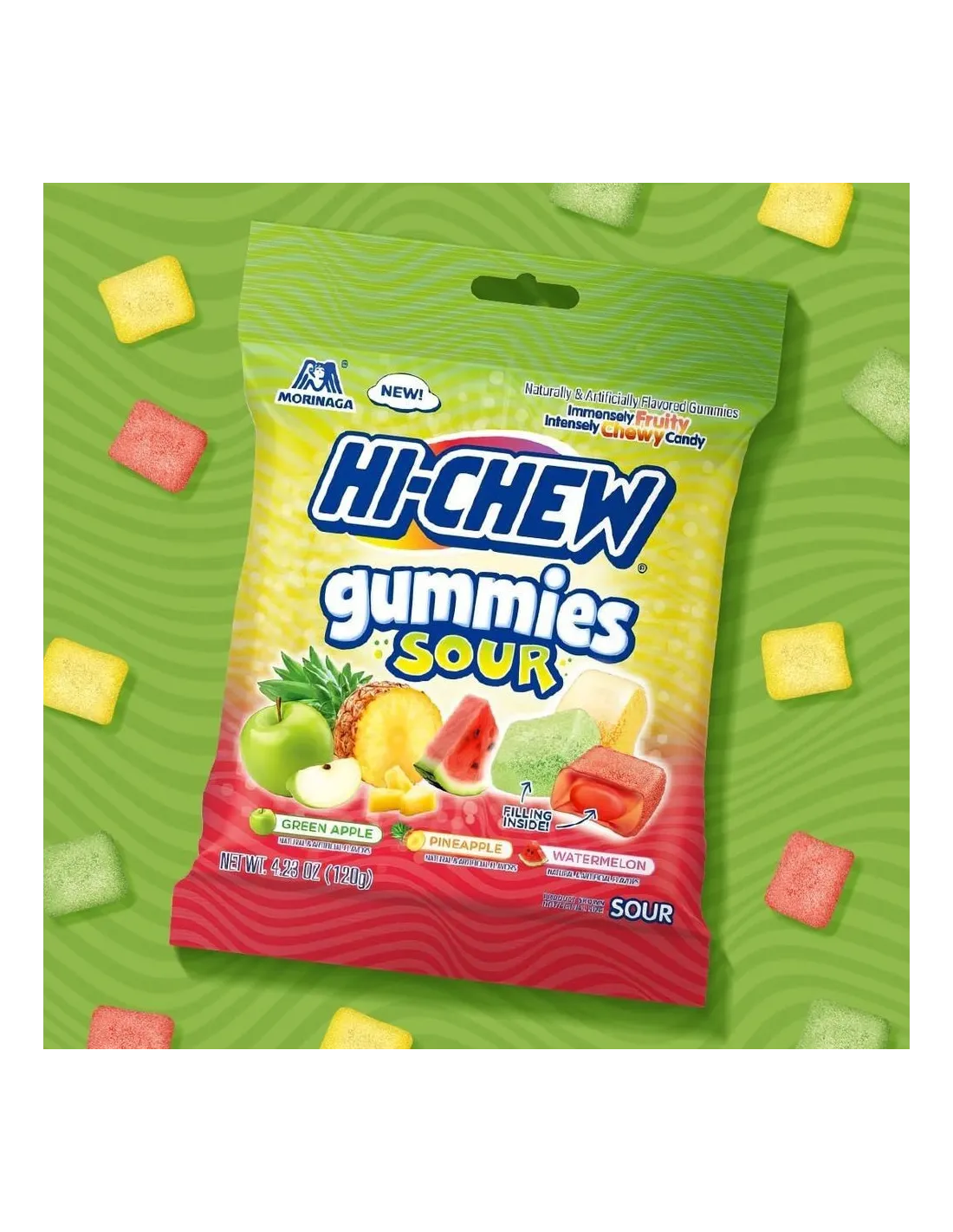 Warning: They're spicy! Hi-Chew Gummies Sour reinvent the Morinaga experience. Say goodbye to classic chewing gum and hello to gummy candies coated in an intensely tangy powder. Rediscover the brand's legendary fruity flavors in a unique "gummy" texture that will tantalize your taste buds. Find them in our Japanese candy section.