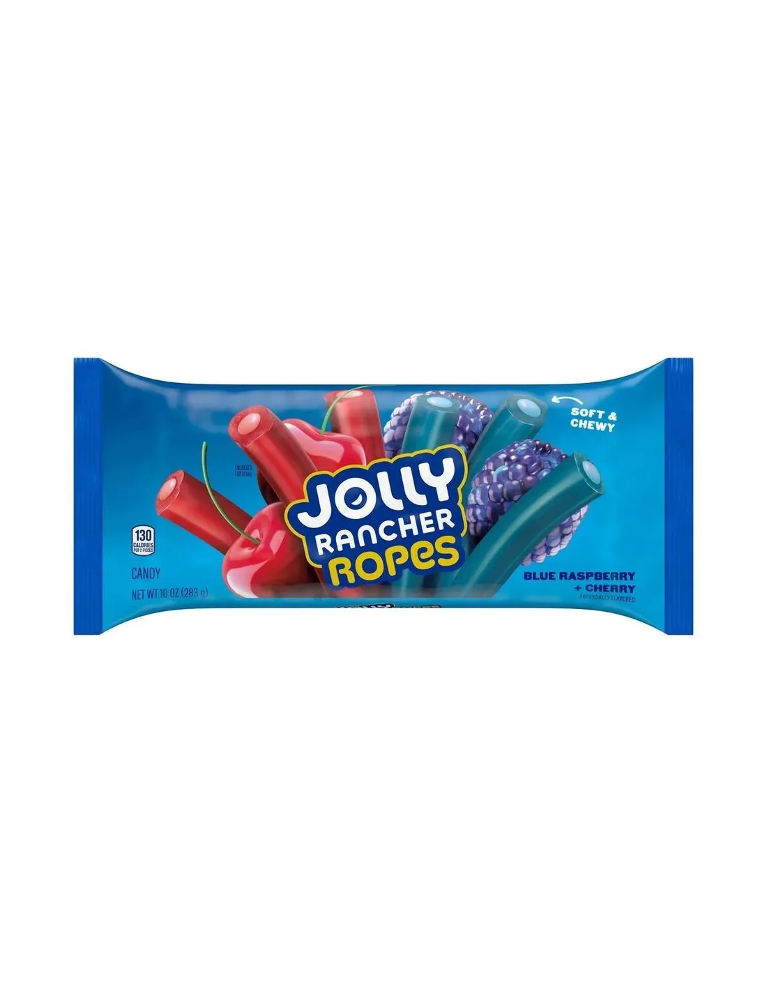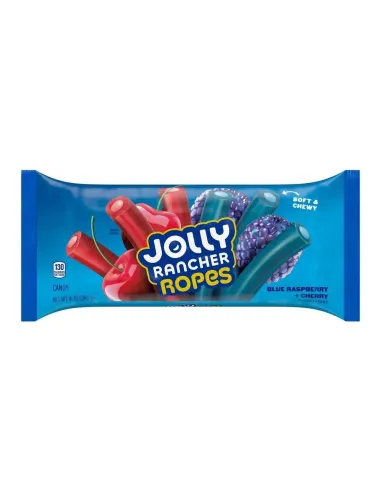 Jolly Rancher Ropes Blue Raspberry & Cherry reinvent the famous Jolly Rancher candies in a chewy, melt-in-your-mouth version that's easier to bite and even more fun. Each rope combines a soft, cherry-flavored outer shell with a melt-in-your-mouth blue raspberry center that's intensely fruity and slightly tangy—an iconic combination of modern American candy.