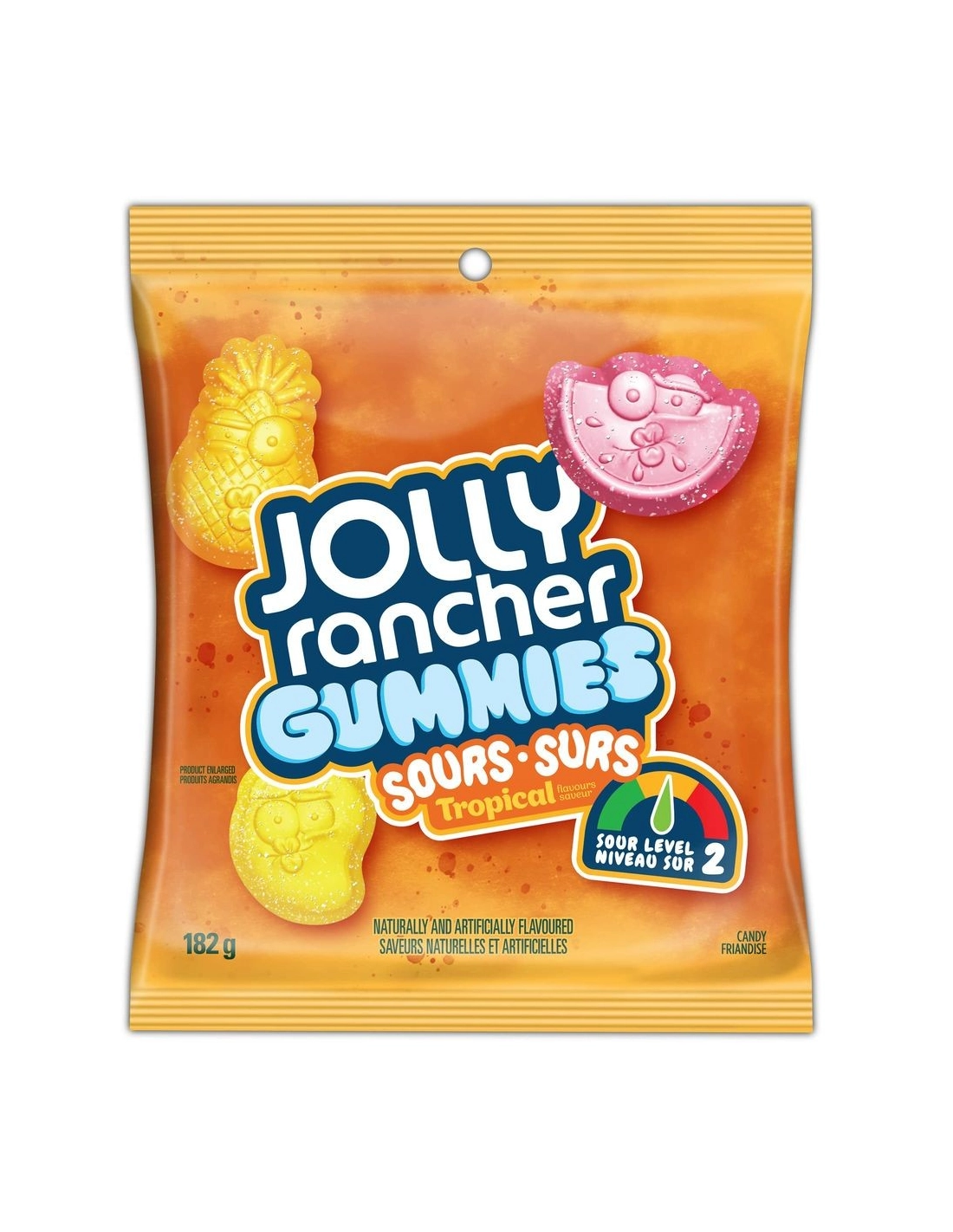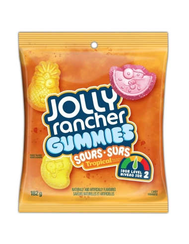 Get ready for an exotic and tangy trip with Jolly Rancher Gummies Sour Tropical (182g) ! Directly imported from Canada , this generous bag introduces you to the sunniest version of the famous North American sour gummies . Let yourself be tempted by these irresistible little candies with intense tropical fruit flavors (pineapple, mango, tropical punch...). The soft, fruity, and deliciously tangy snack that brings the beach straight to your taste buds!