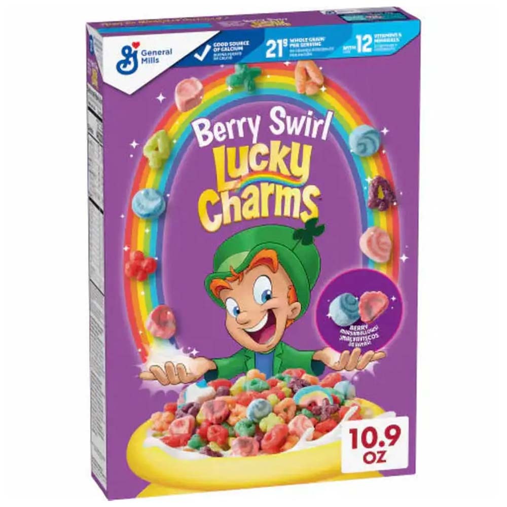 To start the day off right, choose Lucky Charms Berry Swirl cereals with this brand new red berry flavor.