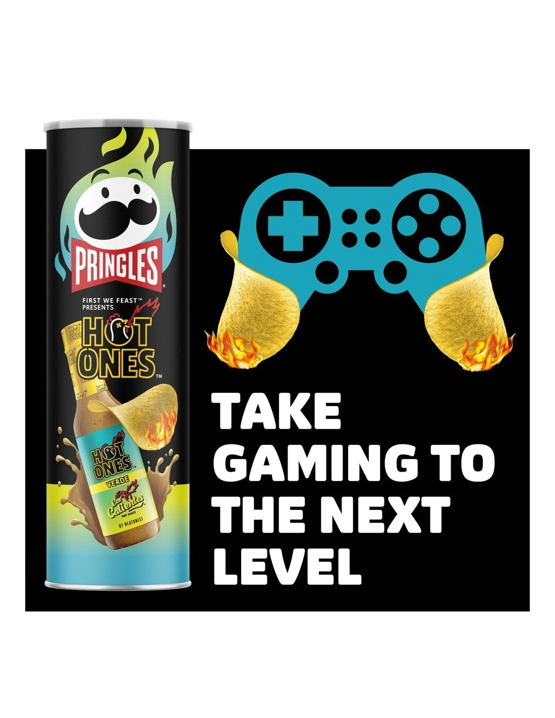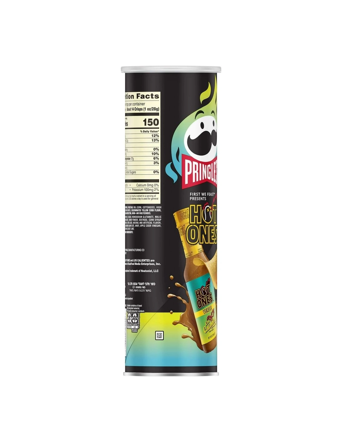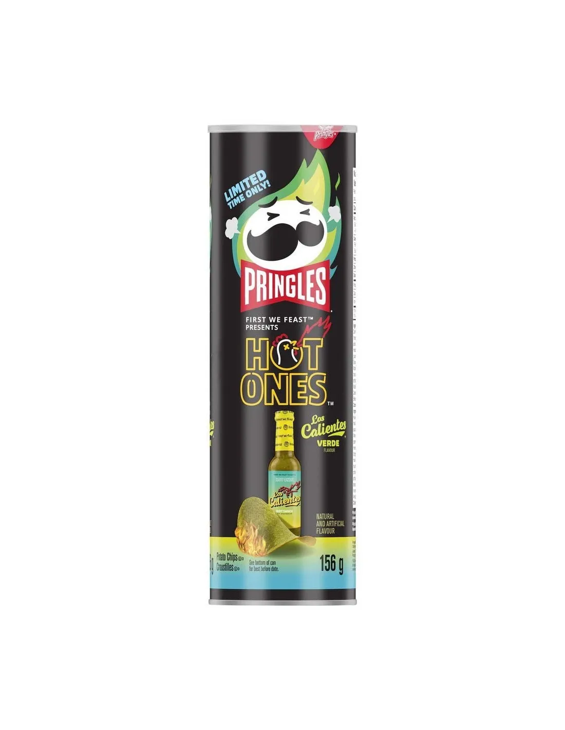 Burning and very hot mix with these Los Calientes green chili chips , discover the surprising taste of Pringles Hot Ones Los Calientes Verde chips. A tantalizing crunch combined with a punchy seasoning of peppery flames for thrill-seekers!