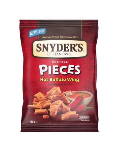 Snyder's Pretzel Pieces Hot Buffalo Wing are one of the most iconic products of the American brand Snyder's of Hanover , famous for its handcrafted pretzels and gourmet savory snacks.