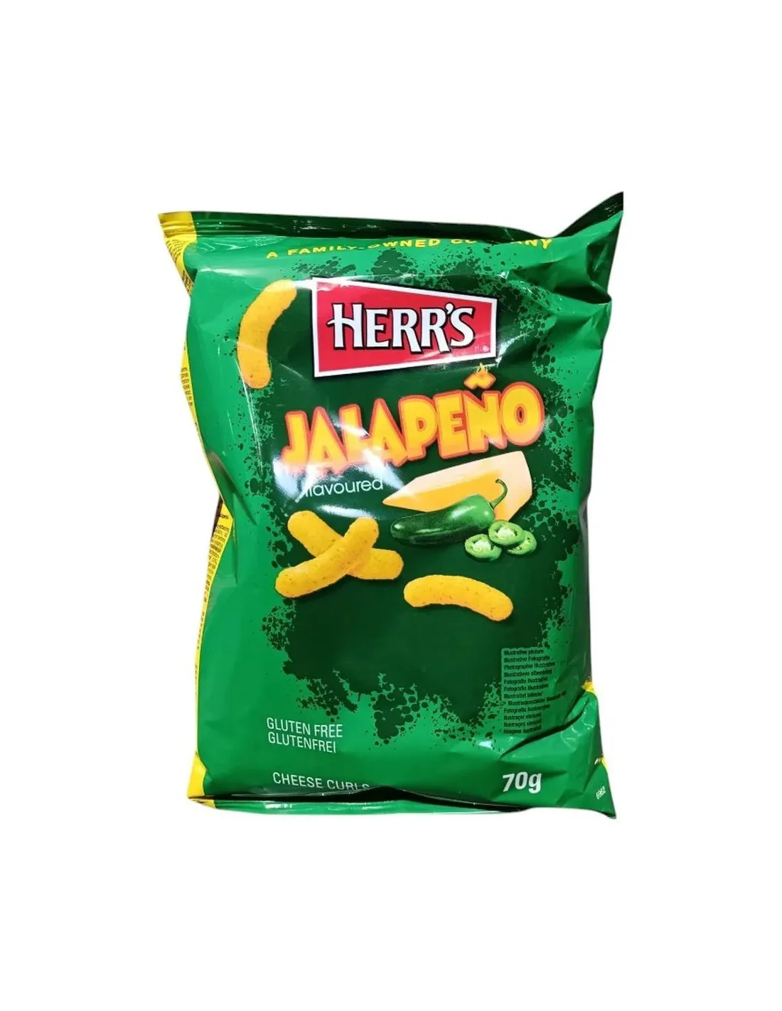 You'll love Herr's Jalapeño Cheese Curls 70g! These little chips combine the sweetness of cheese with the spiciness of Mexican chili peppers. Deliciously spicy and flavorful, these chips will awaken your taste buds.