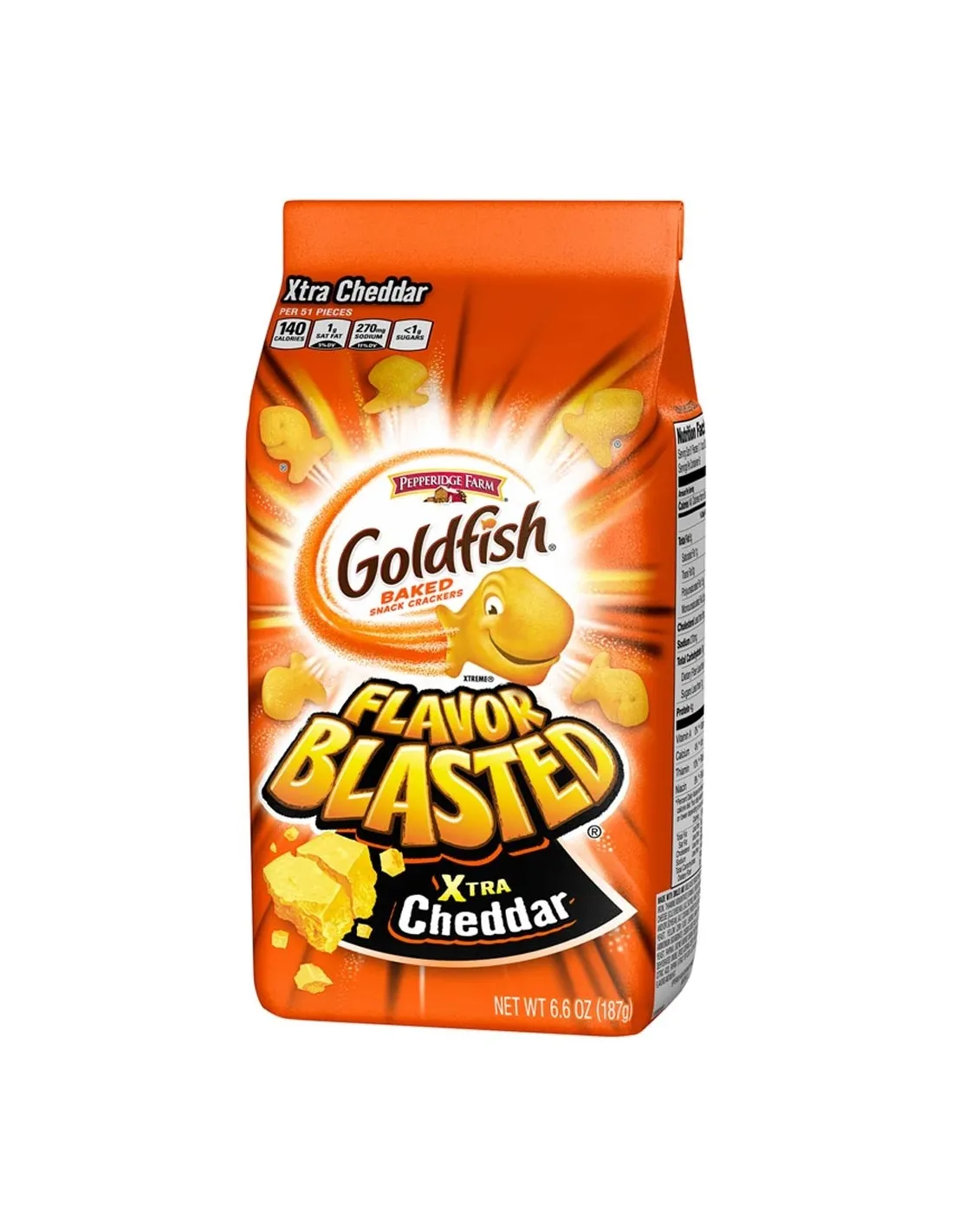 Chips , crackers or even Snack Goldfish are the favorite aperitif biscuits in Uncle Sam's country. These delicious crackers are shaped like small fish, always with a smile. There are different versions. The GoldFish Xtra Cheddar are more accented with cheese than the original version.