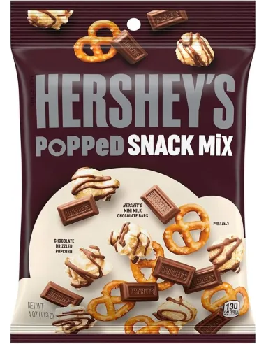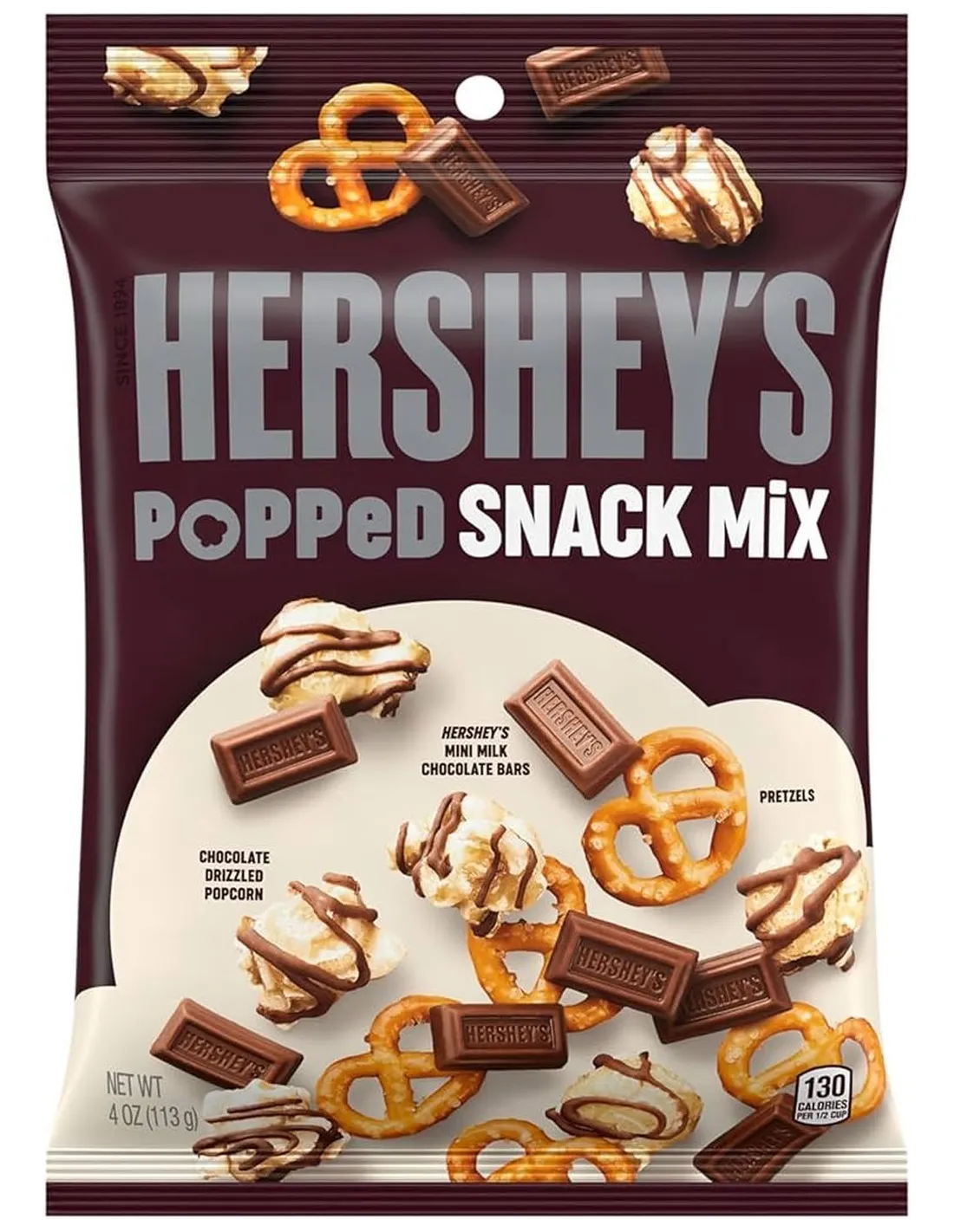 Dive into an ultra-indulgent mix with Hershey's Popped Snack Mix !