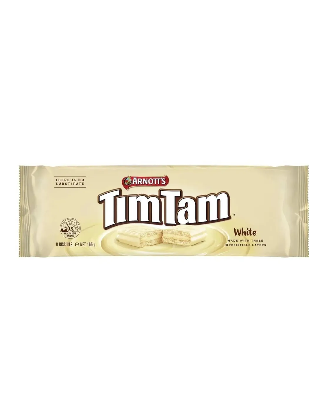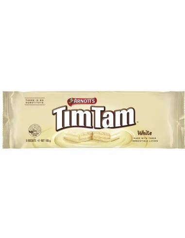 Arnott's Tim Tam White is the white chocolate version of the world's most famous Australian biscuit . An irresistible combination of crisp biscuit , smooth cream , and a velvety white chocolate coating . The Australian icon since 1964, now in its most indulgent form.
