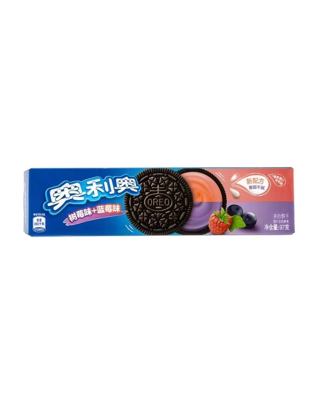 Oreo Blueberry Raspberry Asia stands out thanks to its dual-flavor center: a harmonious blend of sweet blueberry and tangy raspberry . Unlike the classic versions, this edition emphasizes the freshness of wild berries to balance the intensity of the dark chocolate cookie.