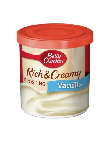 Betty Crocker Rich & Creamy Vanilla Frosting is a delicious, gluten-free vanilla frosting, perfect for cakes, cupcakes, and cookies. Quick and easy: simply open the container, spread the frosting, and enjoy your creations. You can also visit the Betty Crocker website for a variety of recipes to inspire you.