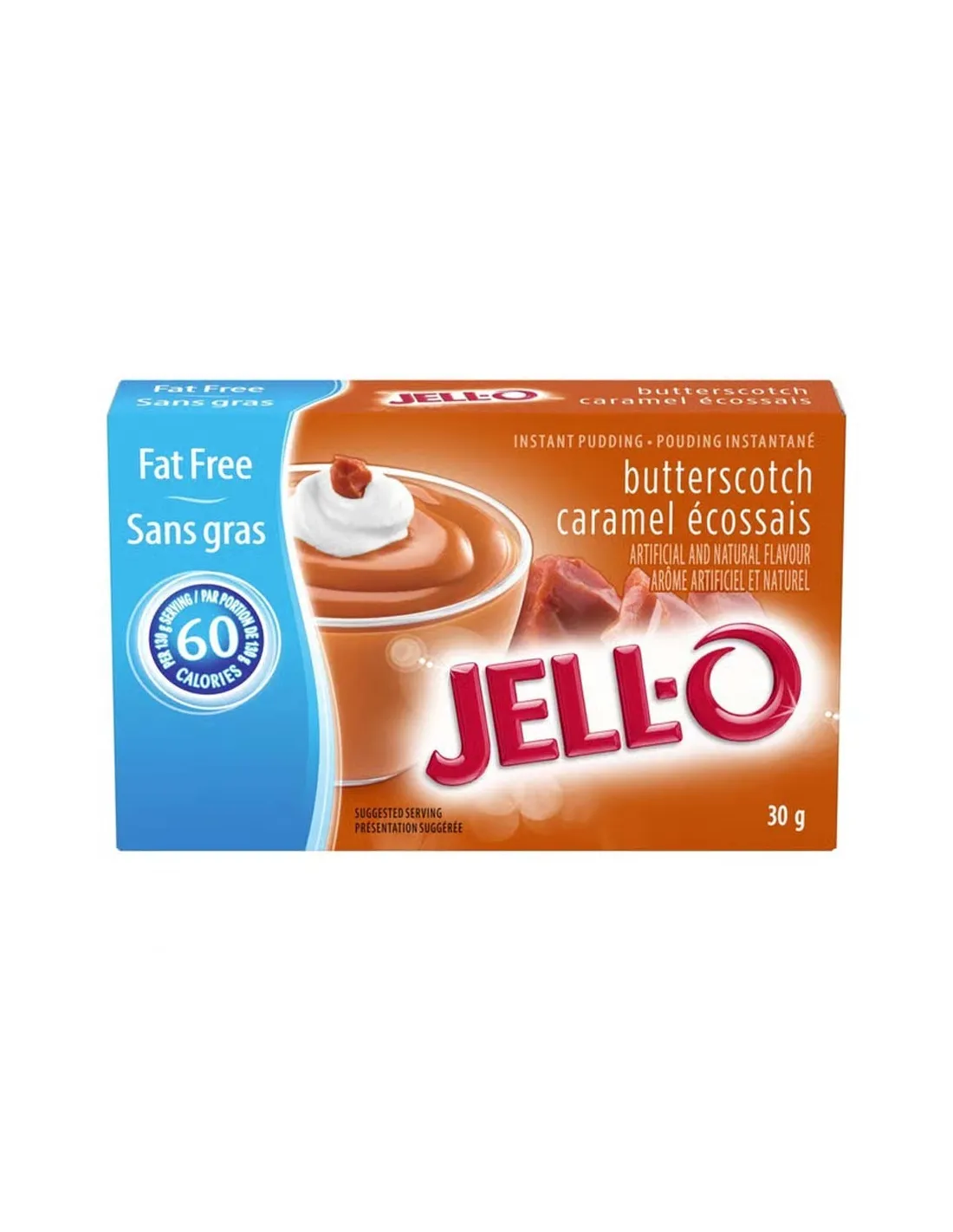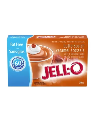 Enjoy all the deliciousness of butterscotch without the guilt with Jell-O Instant Pudding Fat Free Butterscotch . This powdered mix makes it easy to make a creamy, light, and deliciously butterscotch-flavored dessert in just a few minutes, a typically American flavor that combines the sweetness of caramel with a slightly buttery note.