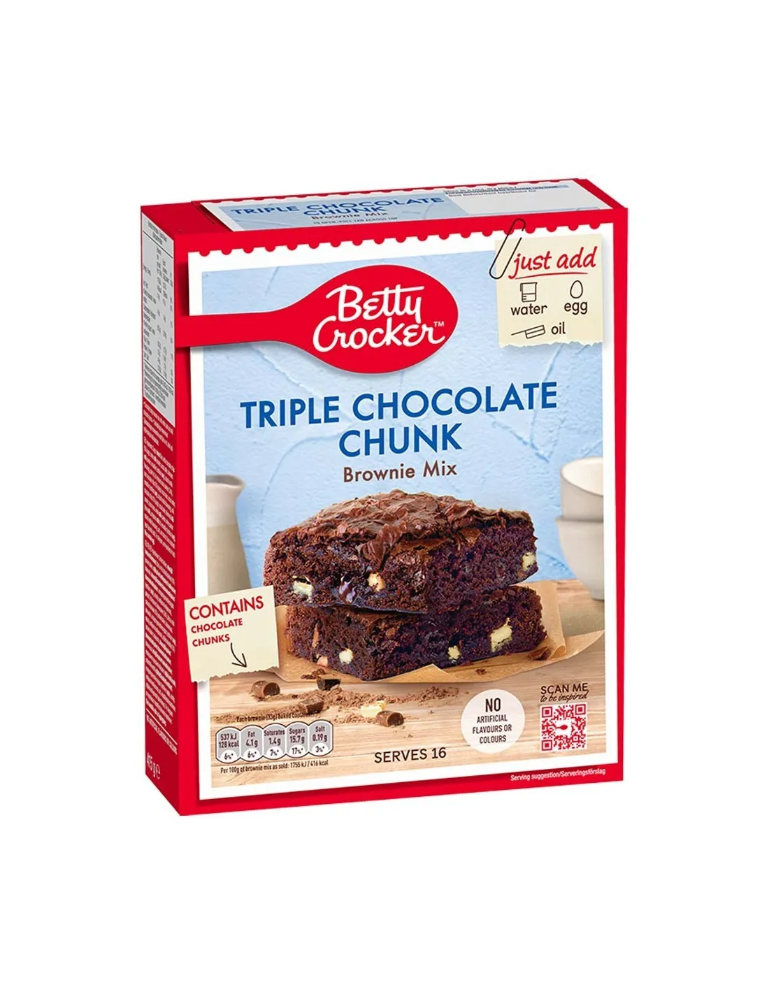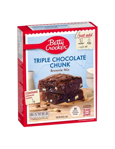 Treat yourself to a dessert worthy of an American pastry shop with Betty Crocker Triple Chocolate Chunk Brownie Mix , the perfect mix for moist, rich and intensely chocolatey brownies.